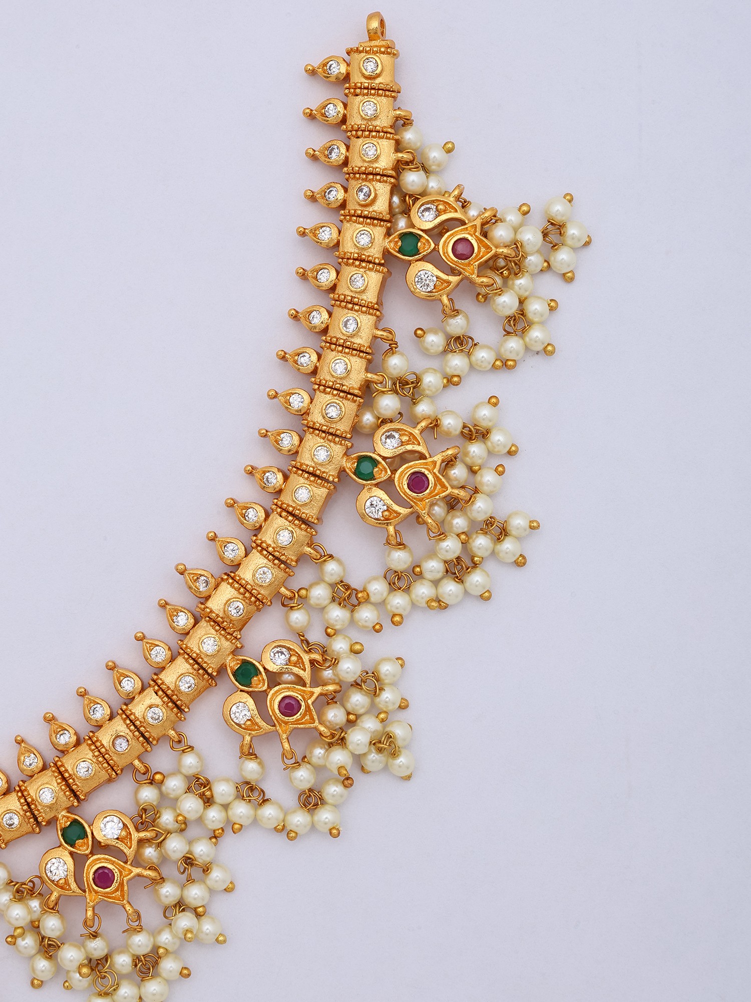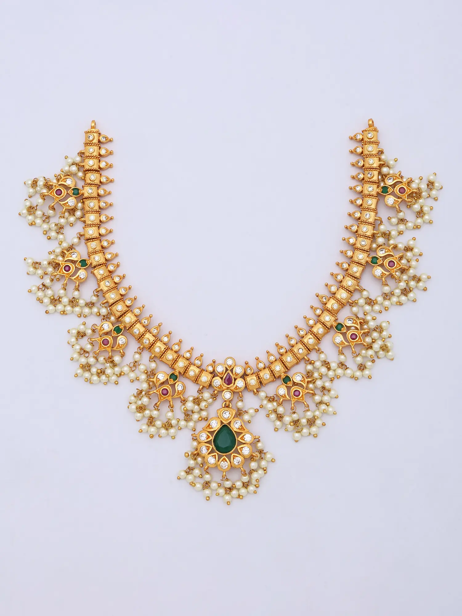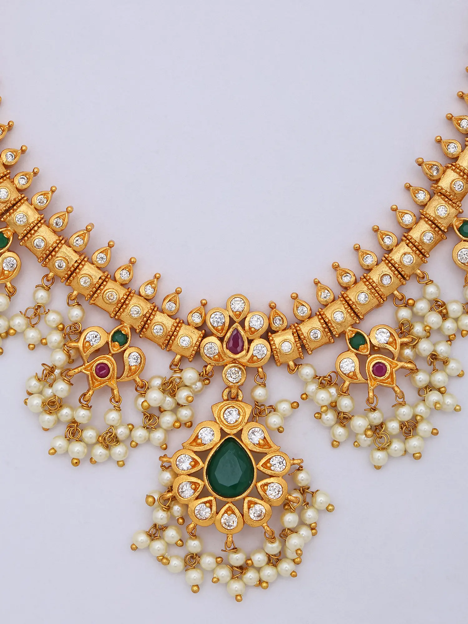 Antique Gold Finish Stone Studded Peacock Necklace Set