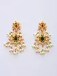 Each element has been meticulously crafted from lustrous brass, chosen for its enduring quality and ability to hold intricate detail. The setting showcases vibrant Polki Kundan stones, renowned for their uncut brilliance, alongside a captivating emerald hue at its heart. Tiny, luminous pearls are carefully suspended, creating a delicate cascade that speaks to the artisans' dedication to perfection.