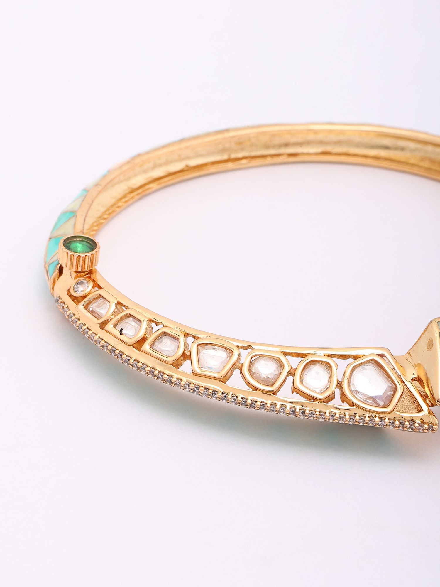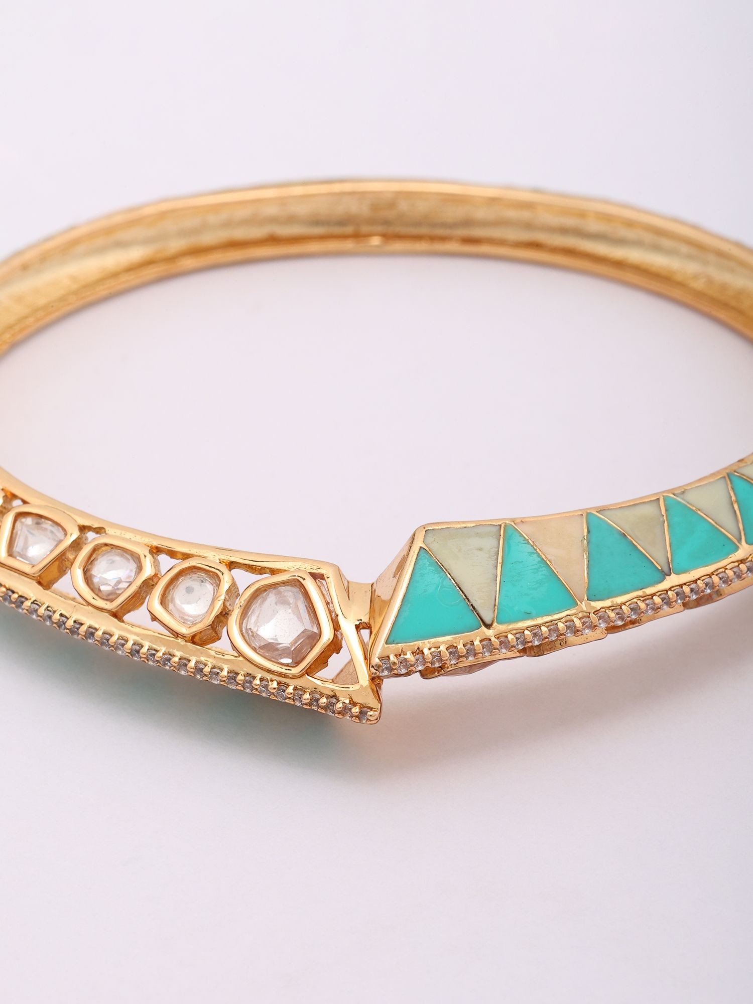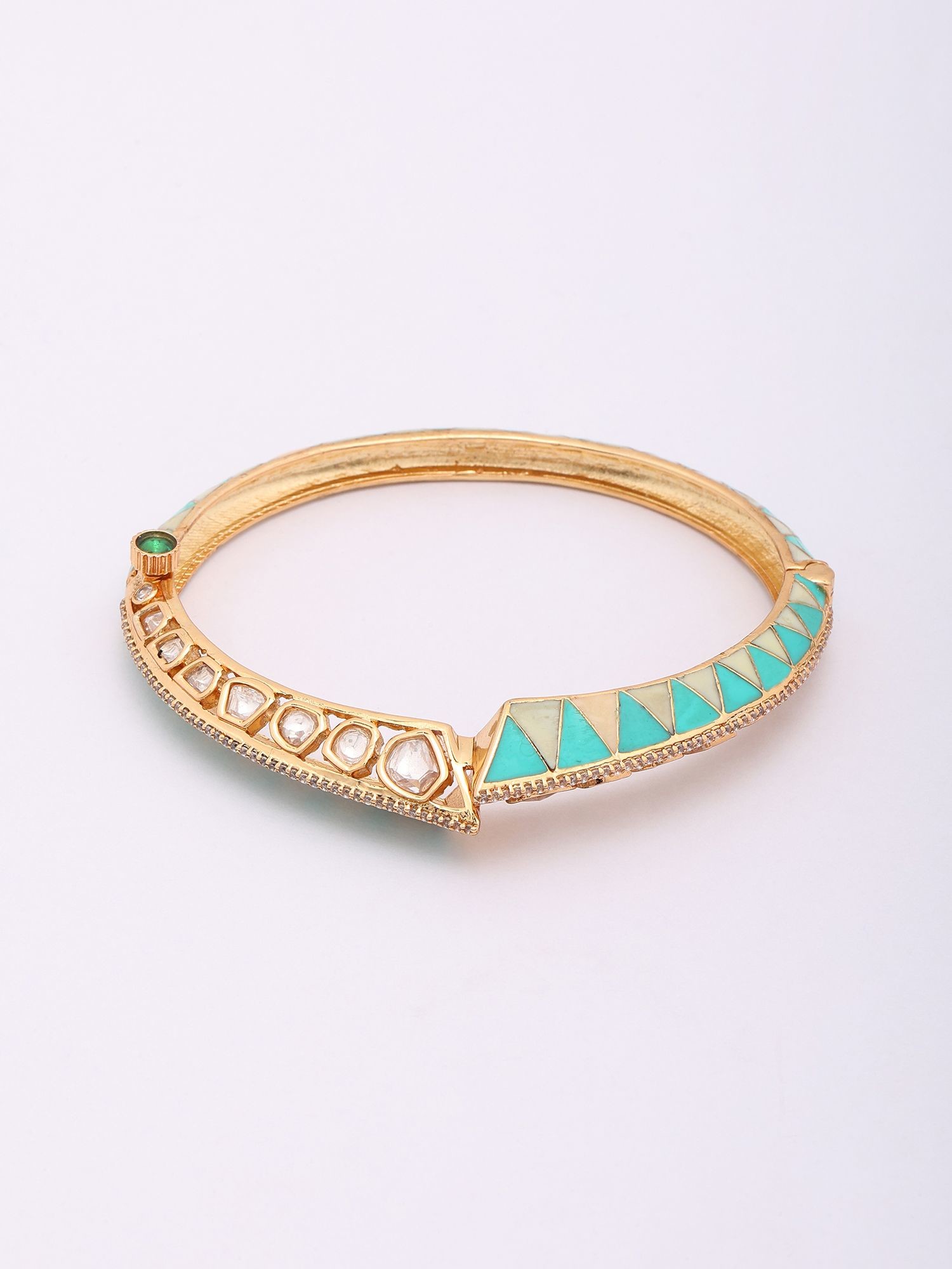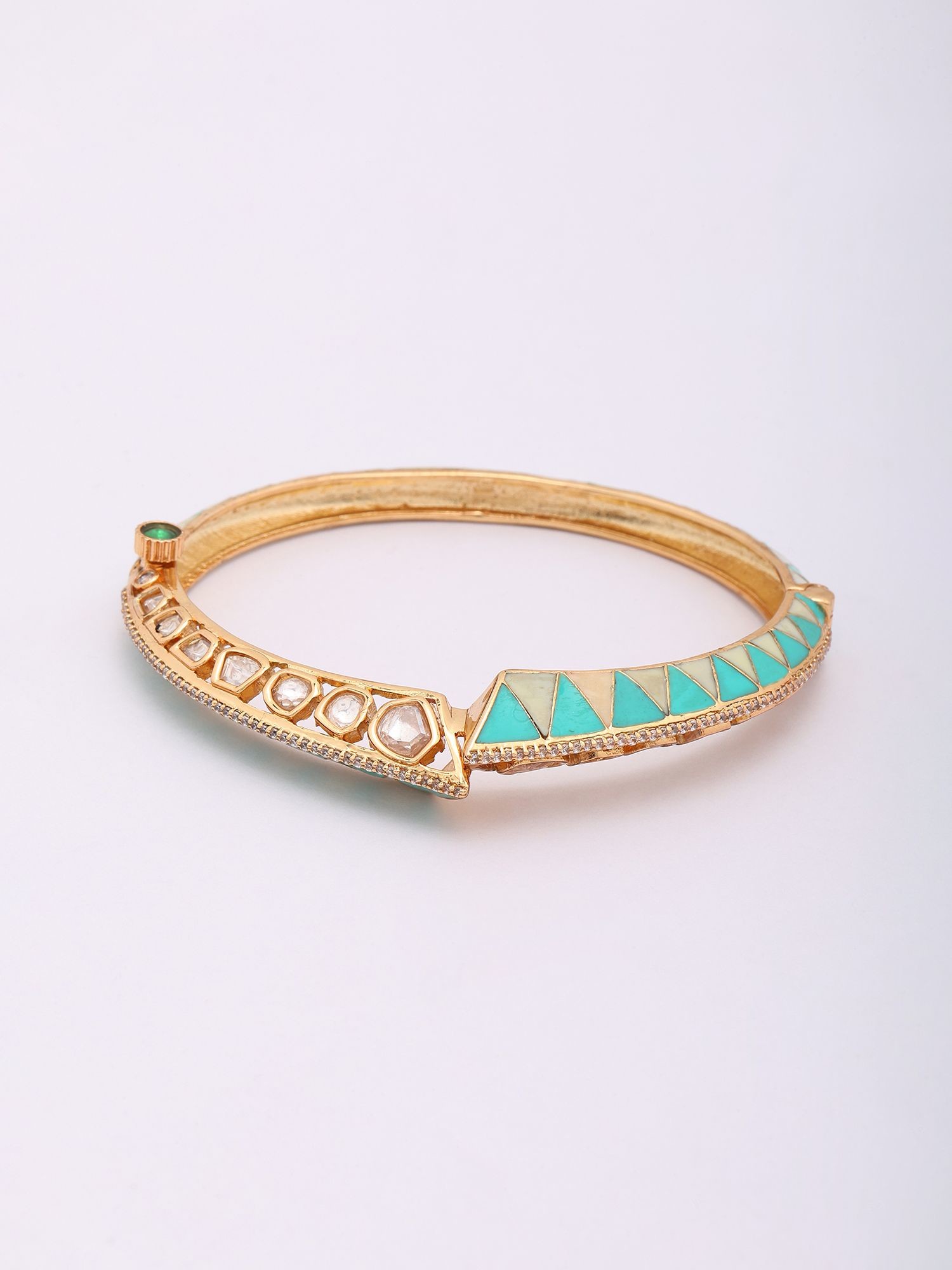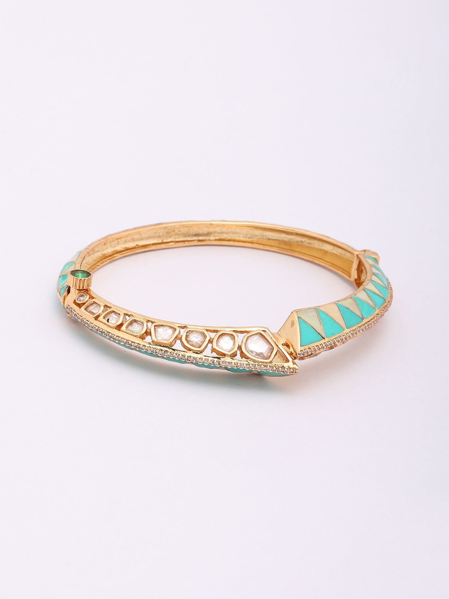 Polki Stone Studded Geometric Enamel Openable Bracelet
