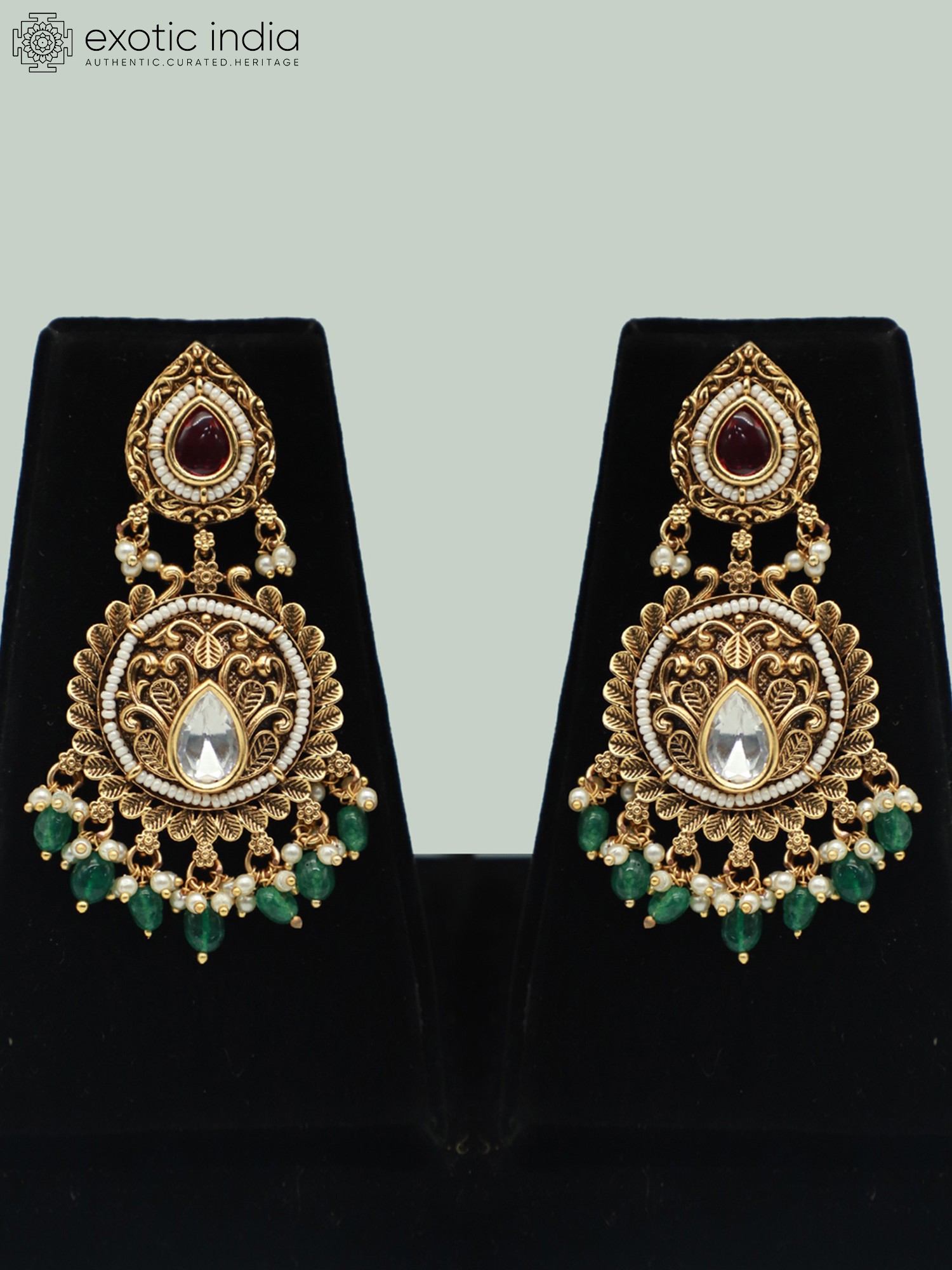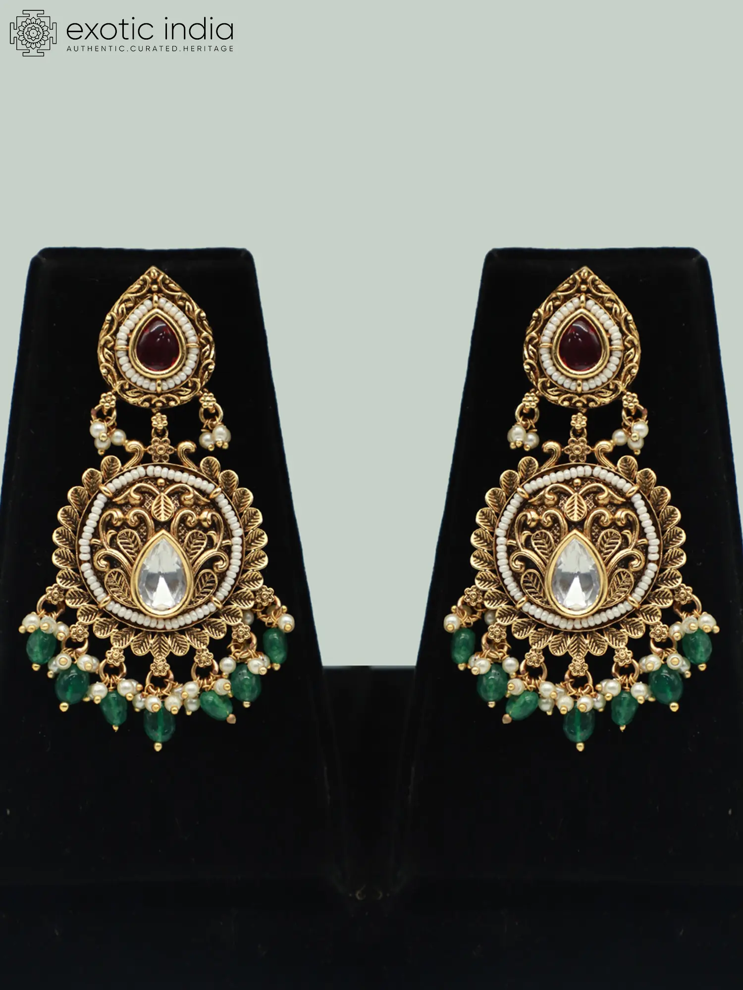 Brass Long Pendant Necklace Set In Premium Quality Kundan With Beads Earrings