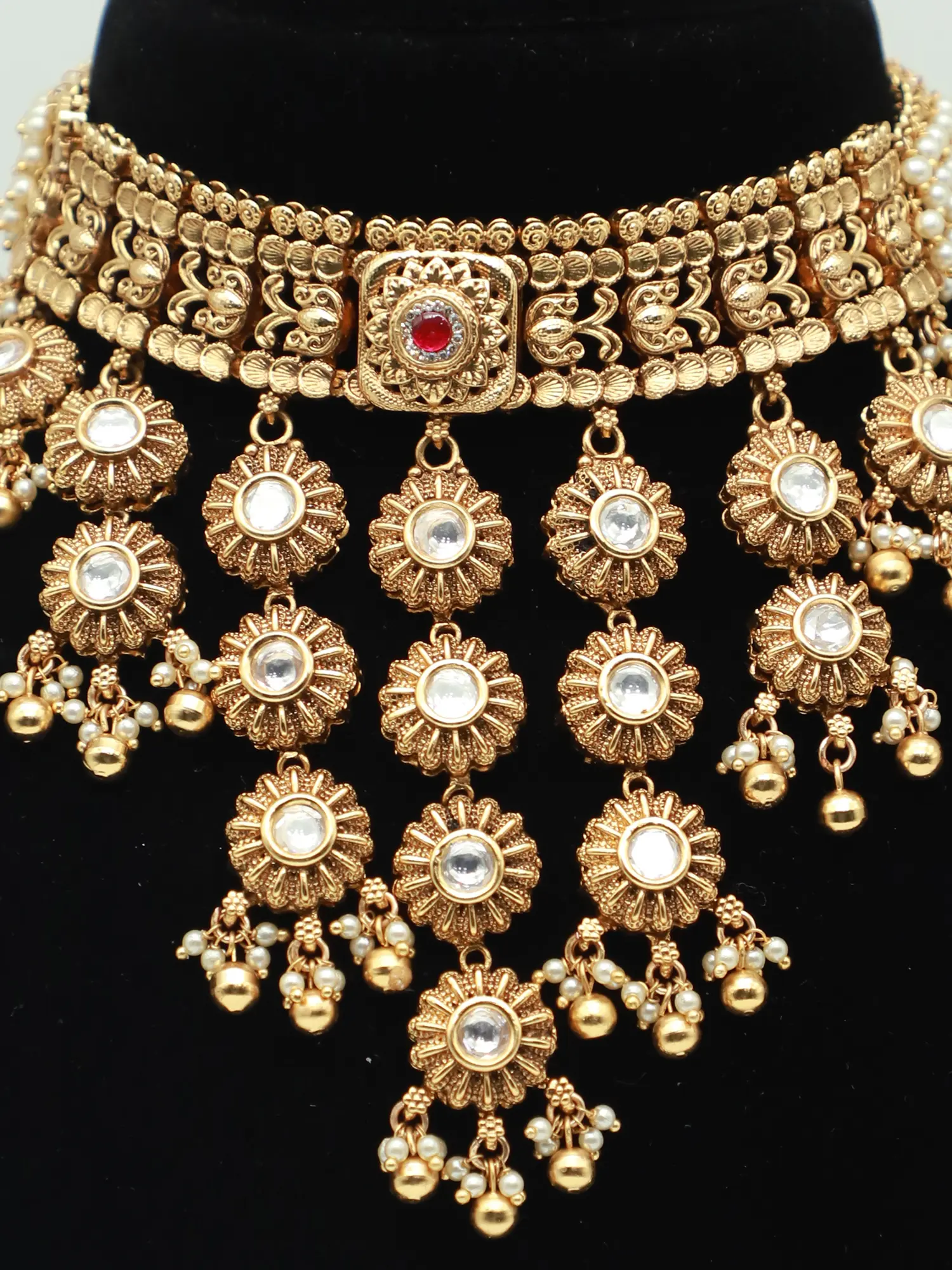 Fusion Hasli-Style Necklace and Earrings Set with Ghungroo Clusters