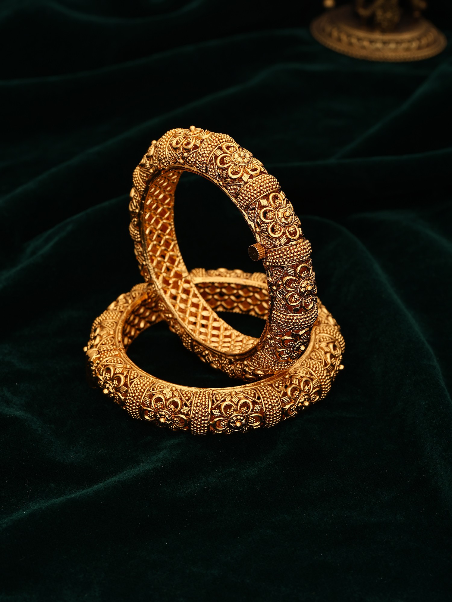 Rajwadi Style Kada Bangles with Intricate Floral Motifs (Pair)