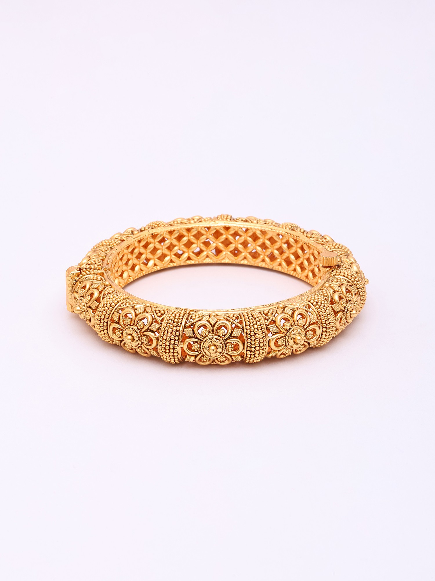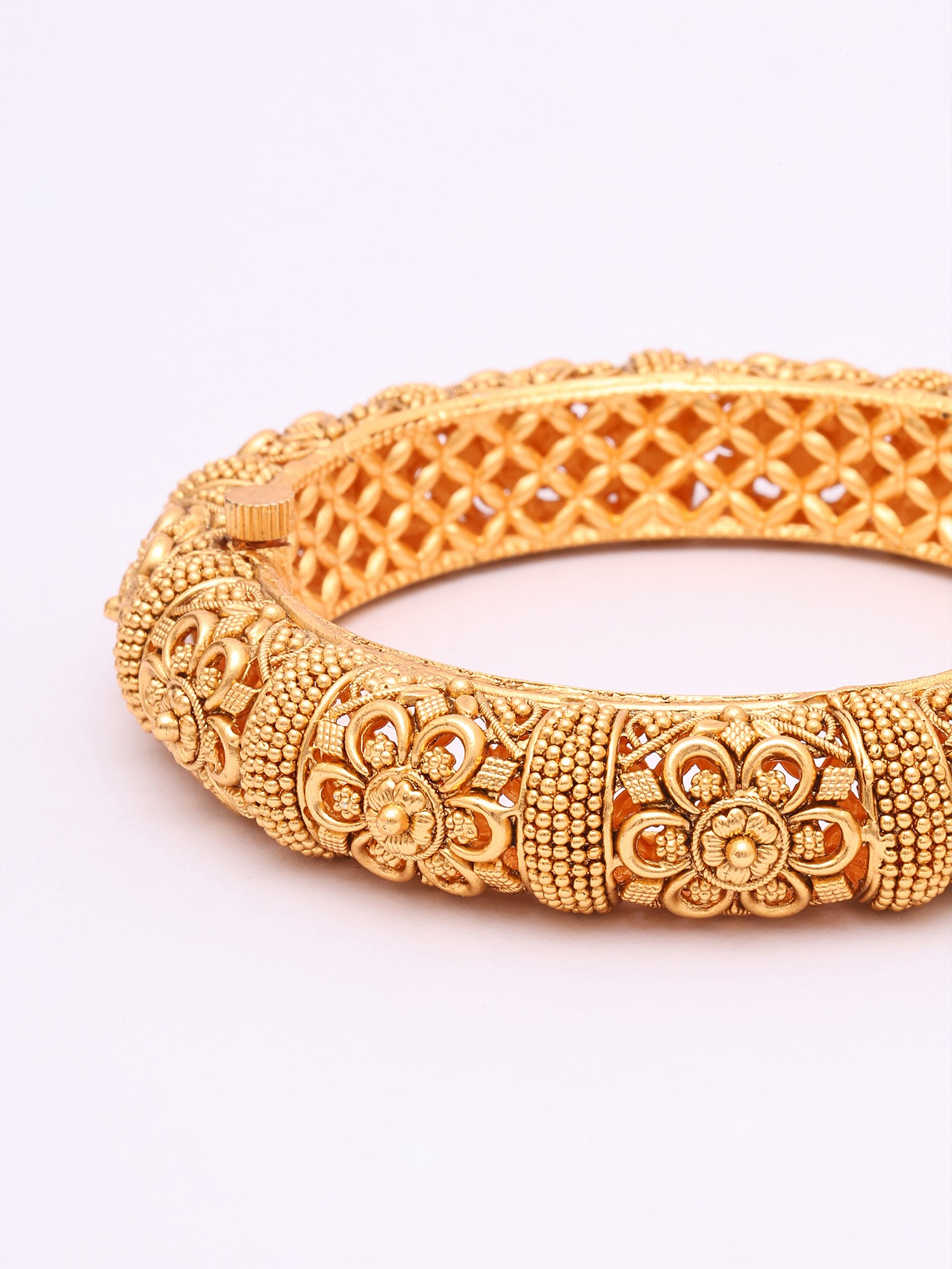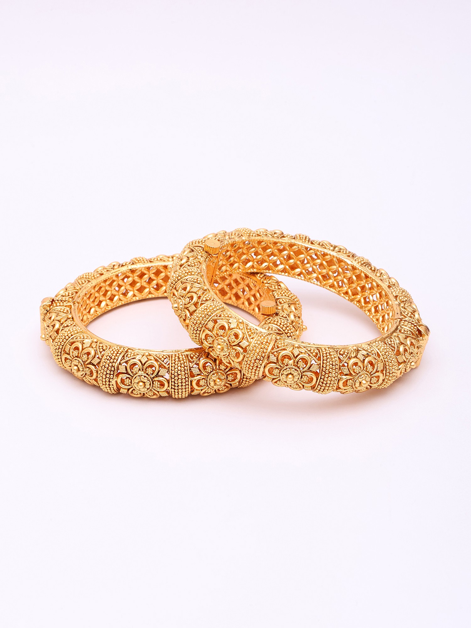 Bridal Kundan Gold Plated Openable Bangles with Intricate Jali Work (Set of 2)