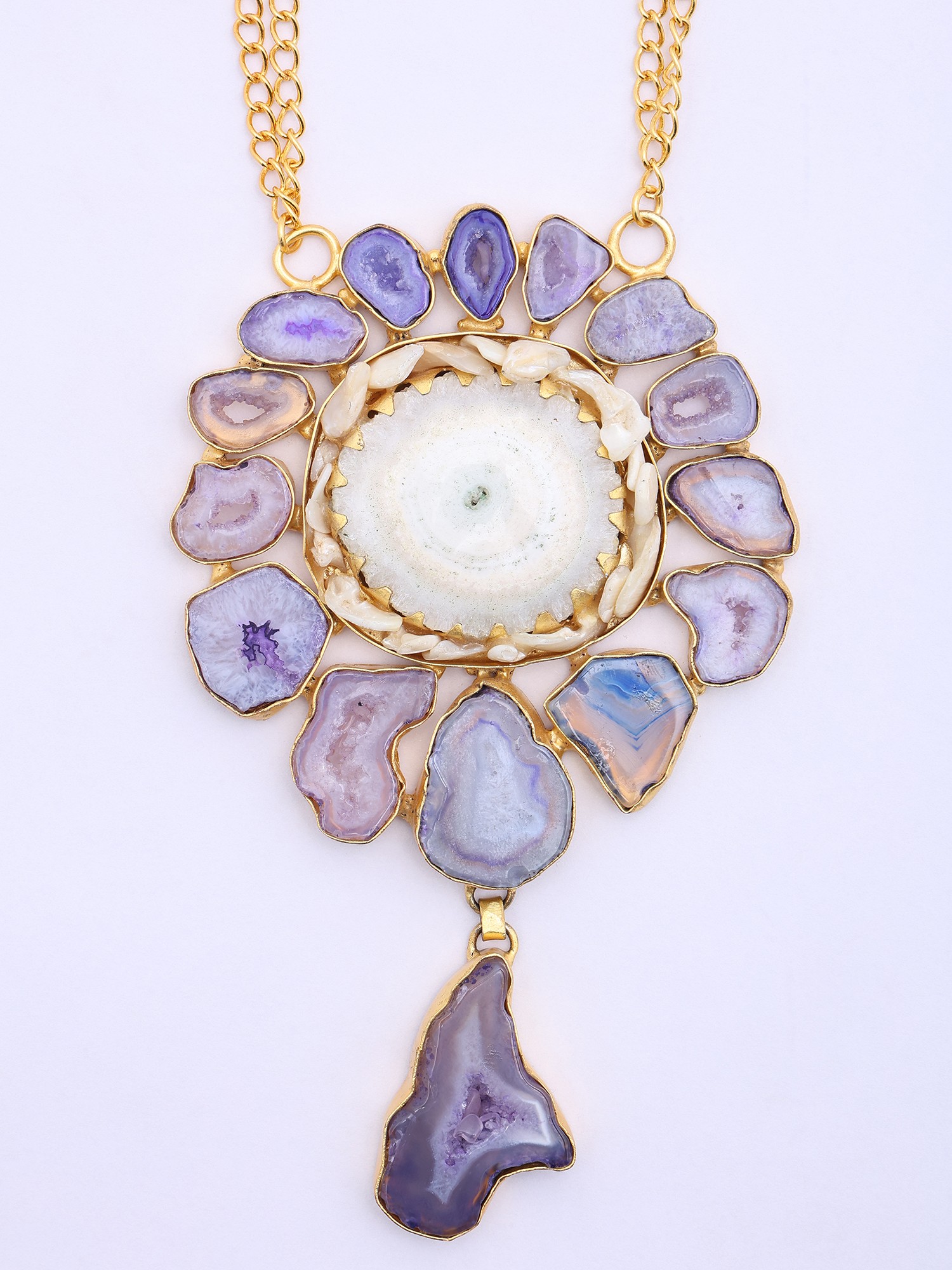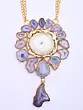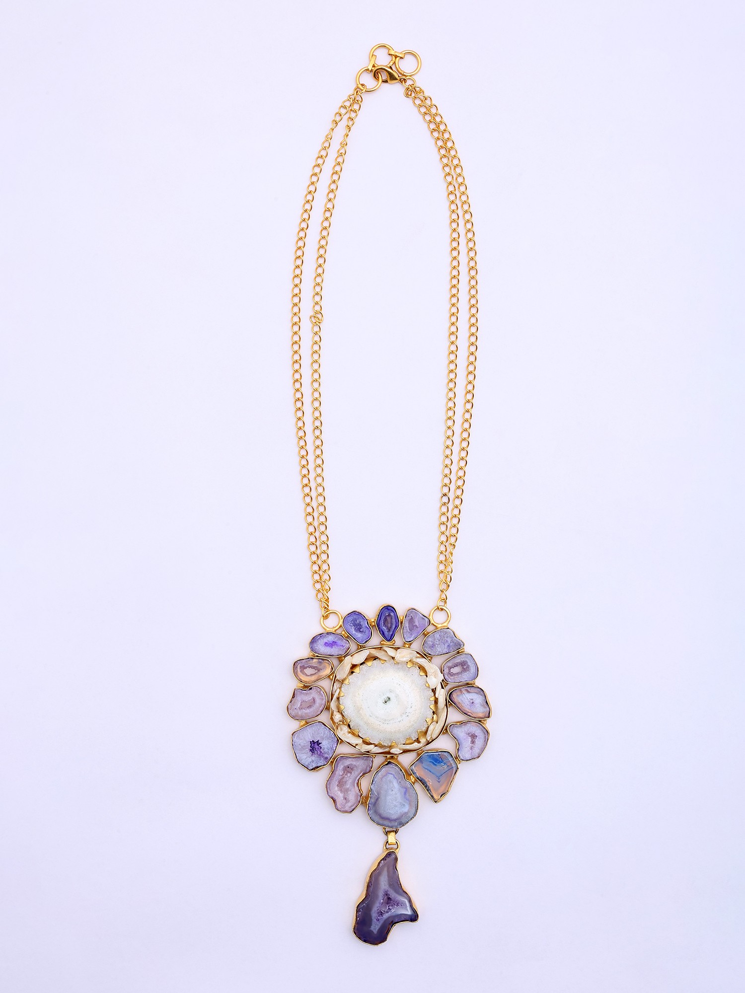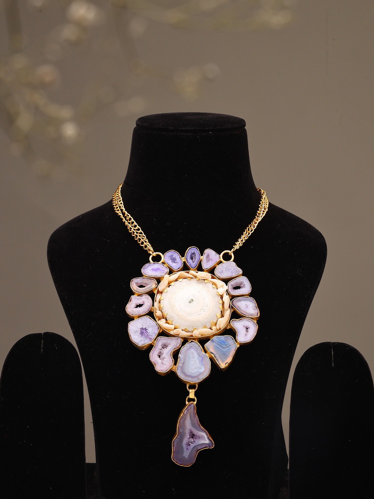 Raw-Cut Style Purple Stone Circular Pendant Necklace