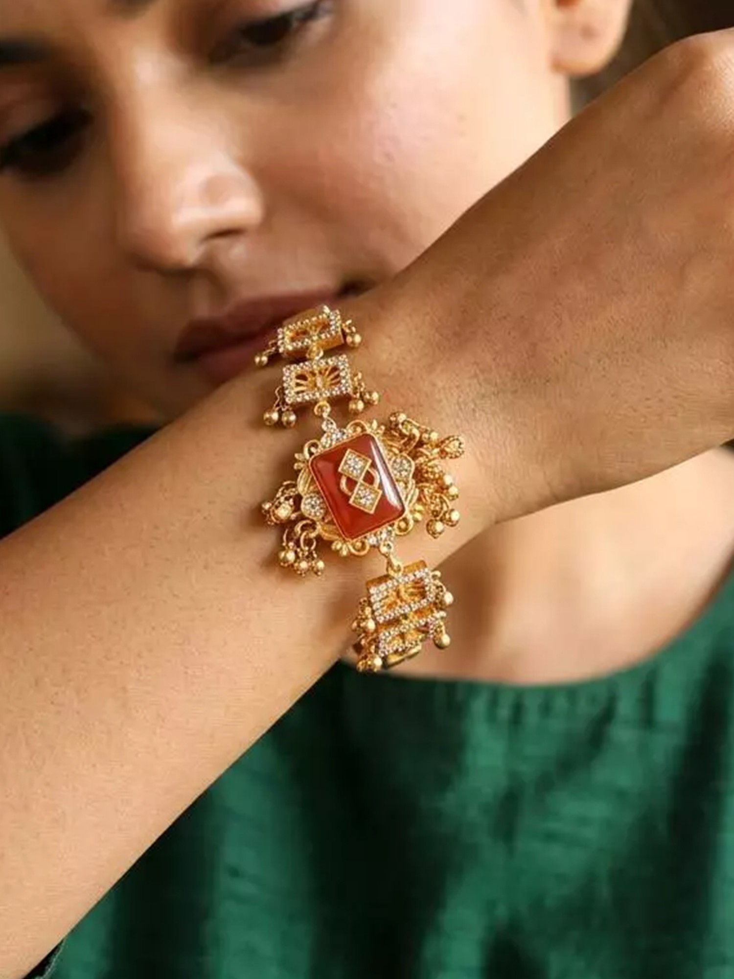 Red Kundan Jadau Stone Studded Adjustable Bracelet