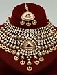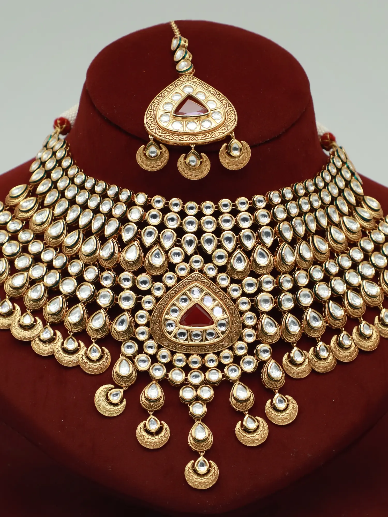 Heavy Moissanite Kundan Necklace Set With Earrings And Mangtika For Bride