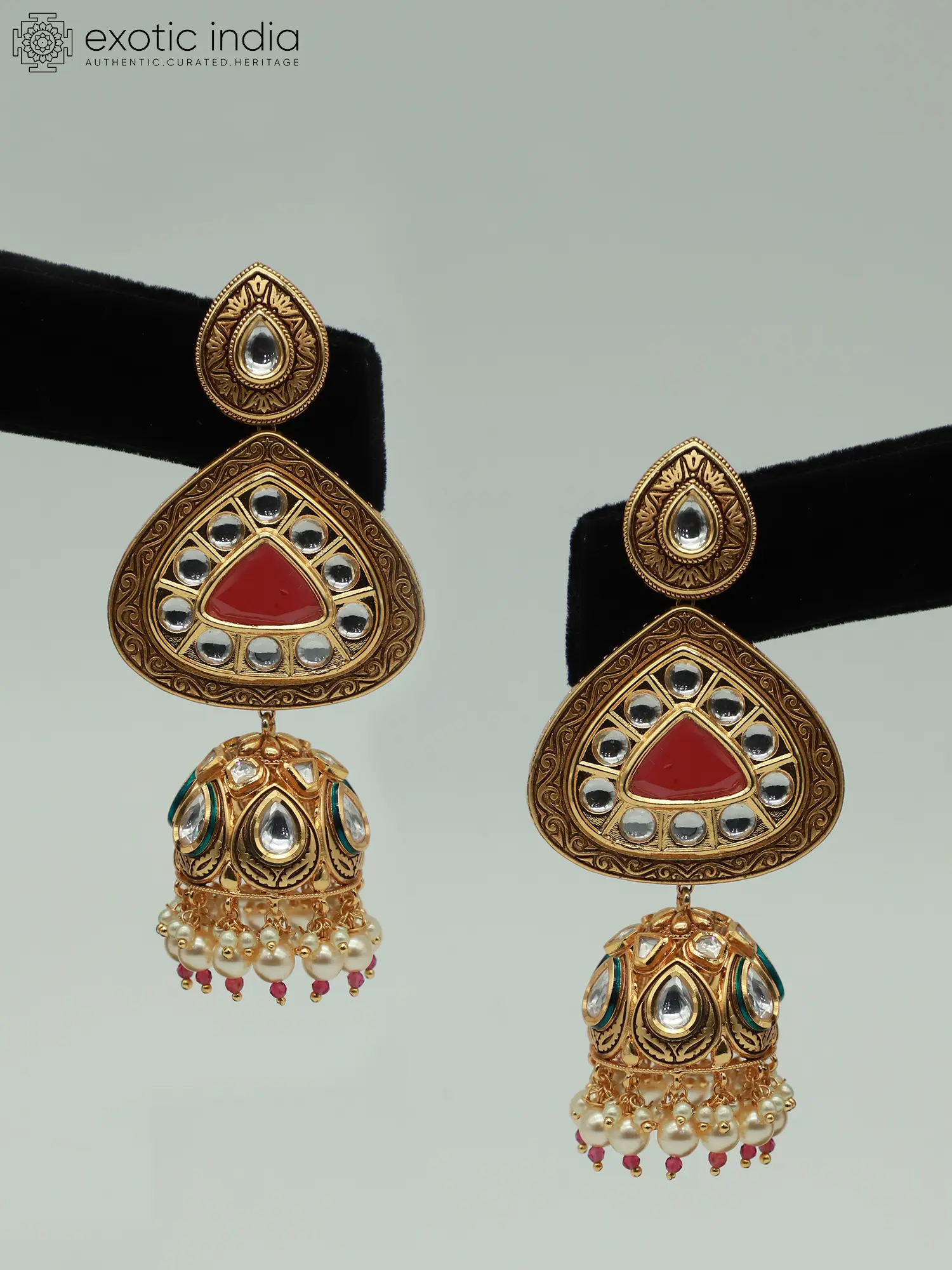 Beautiful Kundan Necklace Set With Hanging Pearl And Earrings