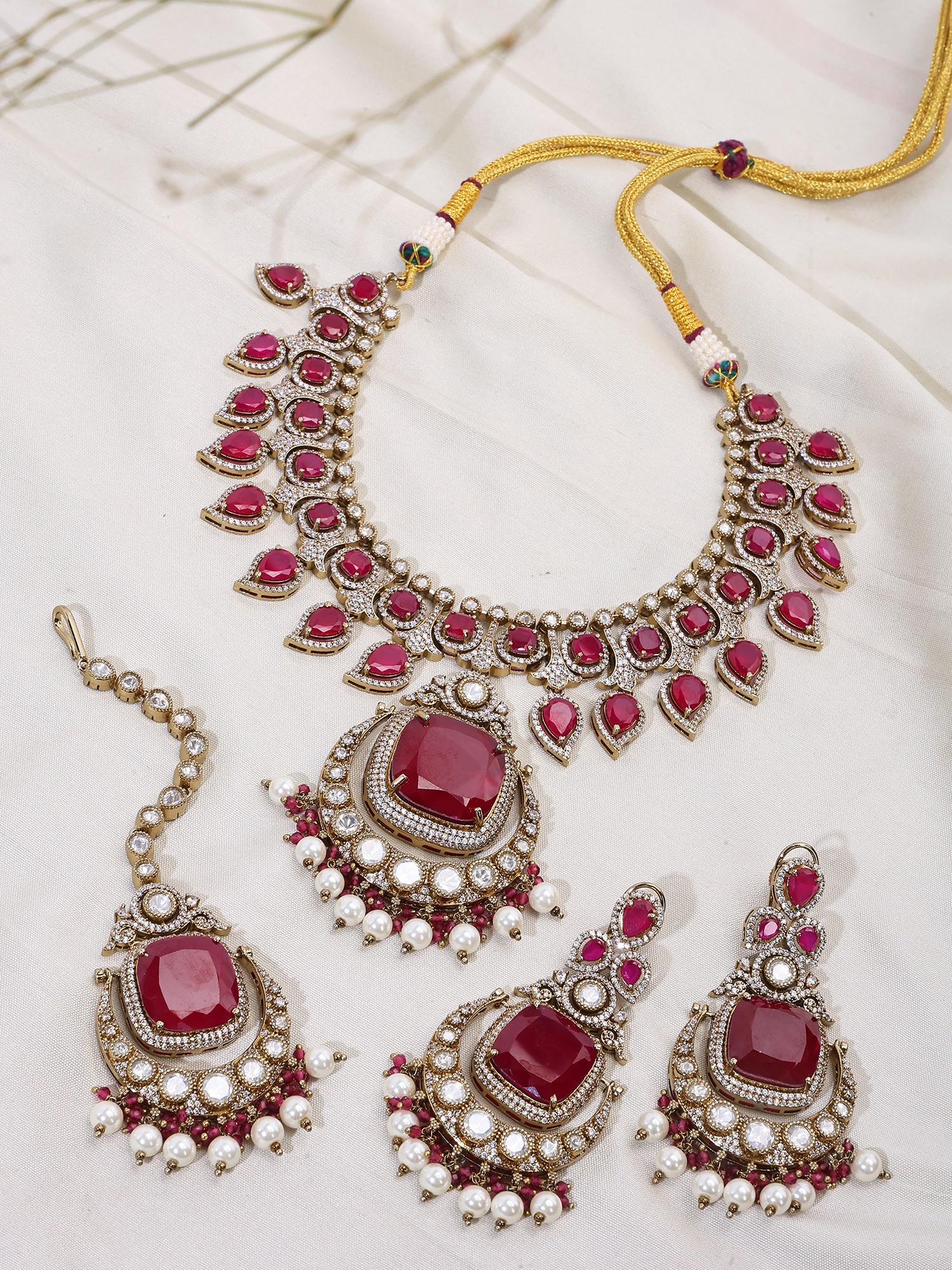 Includes a traditional maang tikka to complete the ensemble.