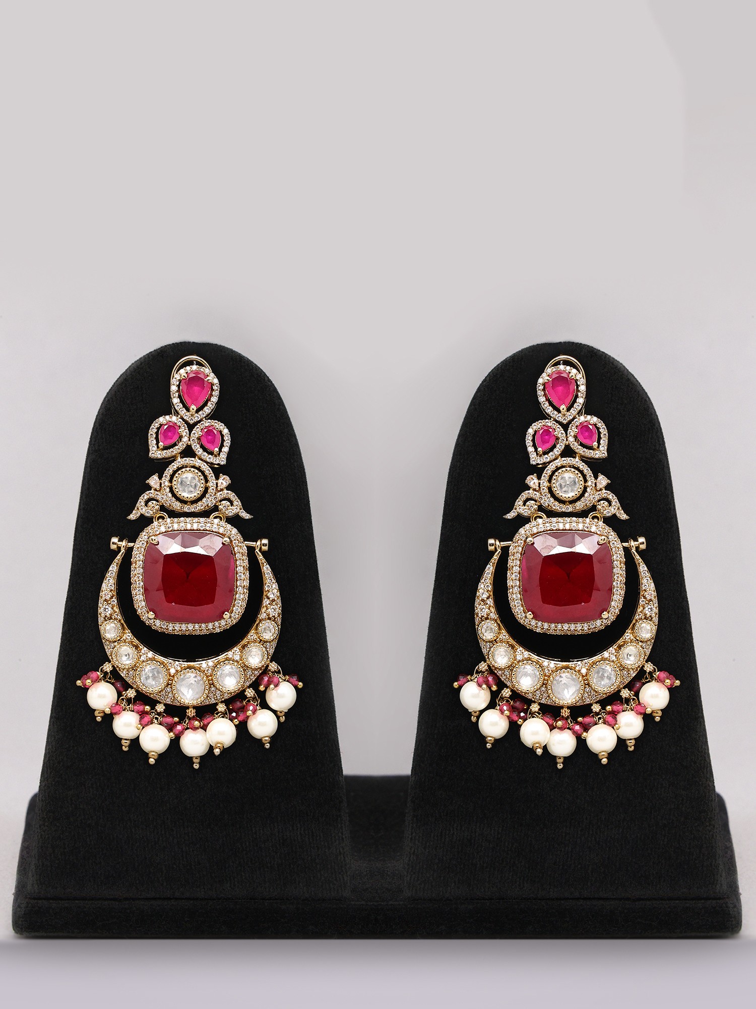The Kundan setting enhances the brilliance of the red stones.