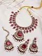 Red Kundan Stone Studded Necklace Set with Matching Earrings and Maang Tikka