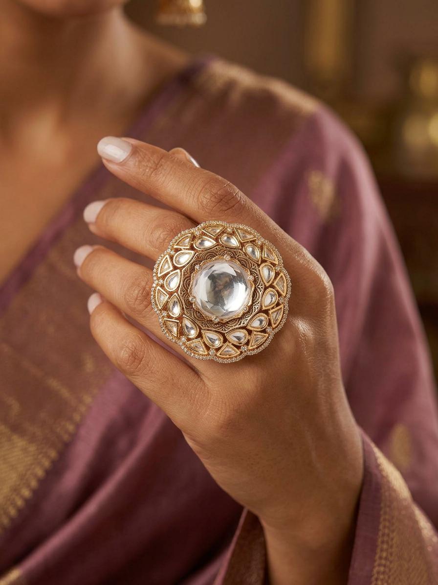 Round Kundan Stone Studded Adjustable Cocktail Ring
