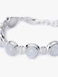 Round Rainbow Moonstone (Cabochon) Studded Sterling Silver Bracelet with Lobster Clasp
