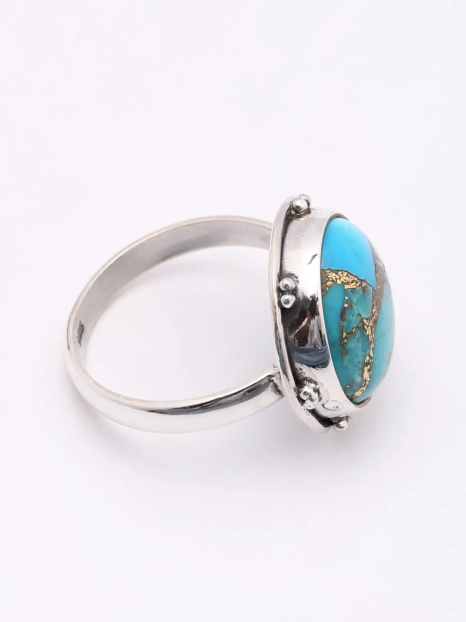 Chic Sterling Silver Ring with Reconstituted Turquoise Stone