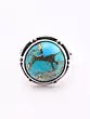 This stunning gemstone is meticulously set within a lustrous sterling silver bezel. The cool, classic gleam of sterling silver provides the perfect complementary backdrop, allowing the vivid hues of the turquoise to truly shine. The bezel itself is thoughtfully designed with a series of delicate, raised beads around its circumference, adding a subtle textural detail and a touch of artisanal charm. These small touches elevate the overall design, showcasing a commitment to both beauty and quality craftsmanship. The band of the ring is smoothly polished, designed for comfortable wear throughout the day.