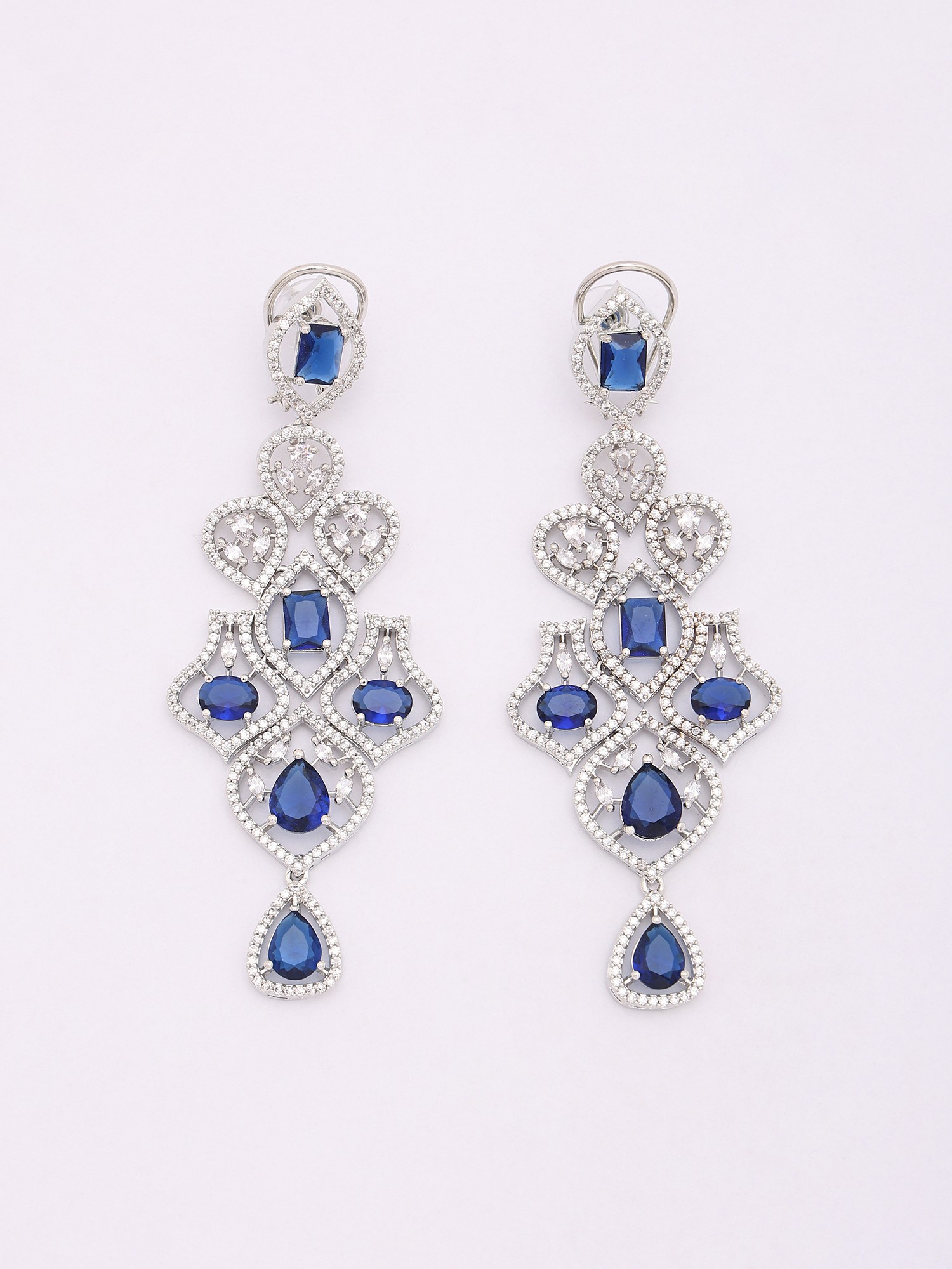 Drawing inspiration from traditional motifs that celebrate nature's exquisite symmetry, this ensemble evokes a sense of timeless grandeur. The vibrant, royal blue hues embedded within the dazzling clear stones mirror the depth and richness of precious gemstones, offering a luxurious aesthetic that transcends fleeting trends. It embodies a spirit of classic beauty that resonates with enduring traditions.