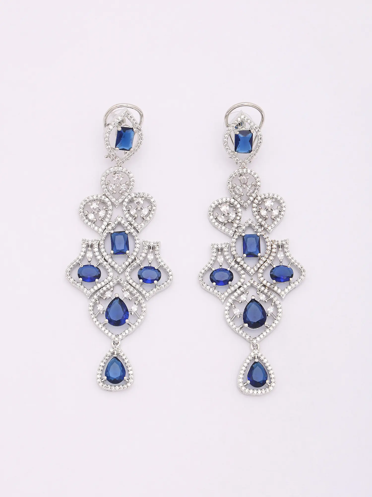 Sparkling CZ and Blue Sapphire Necklace Set with Drop Earrings