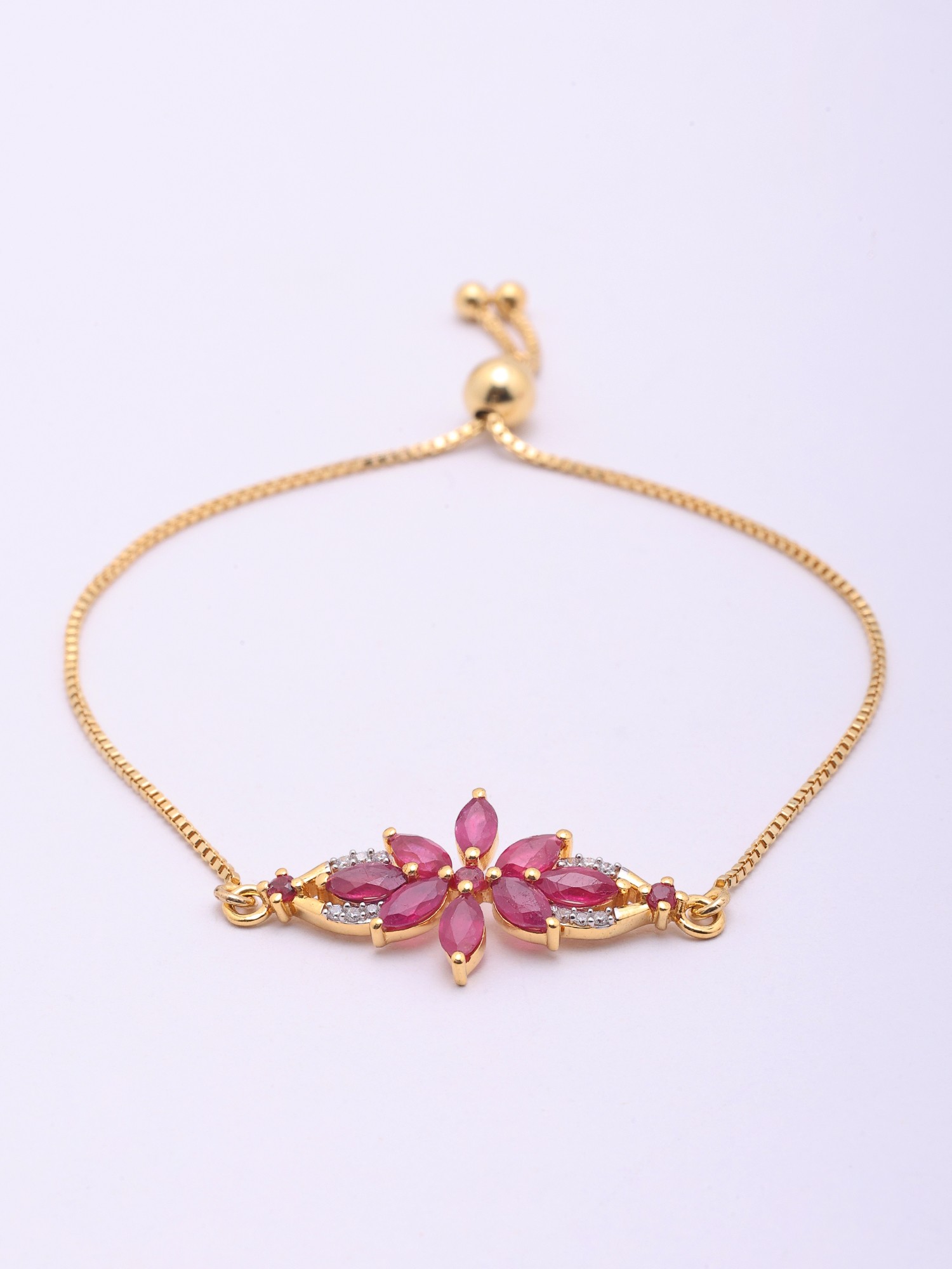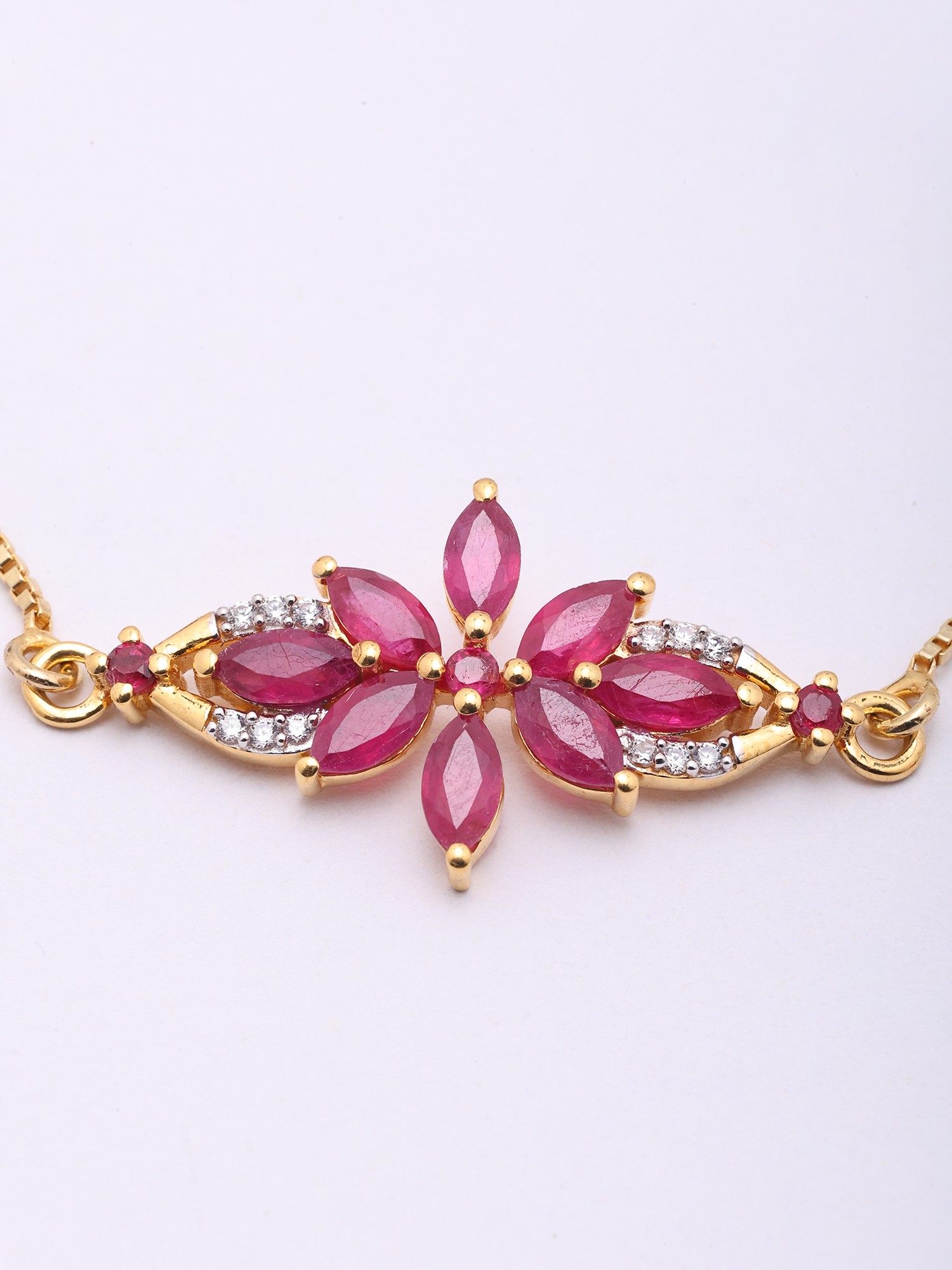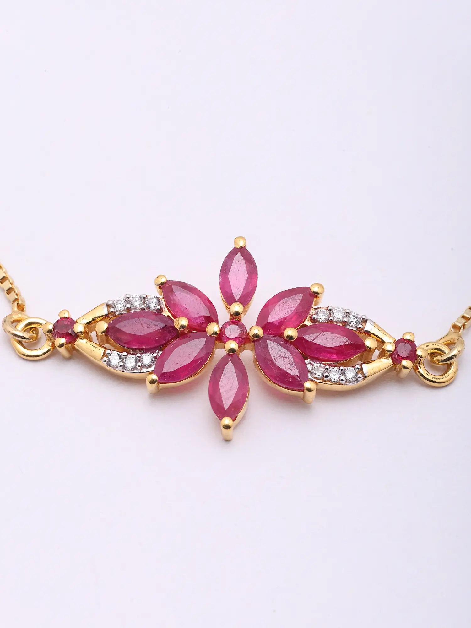 Sterling Silver Bracelet with Ruby Flower Design & Diamond Accents