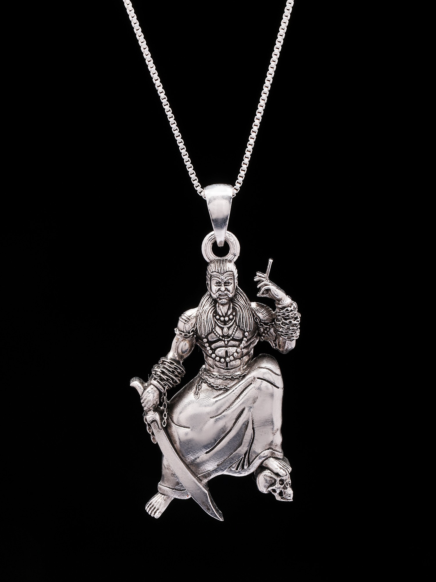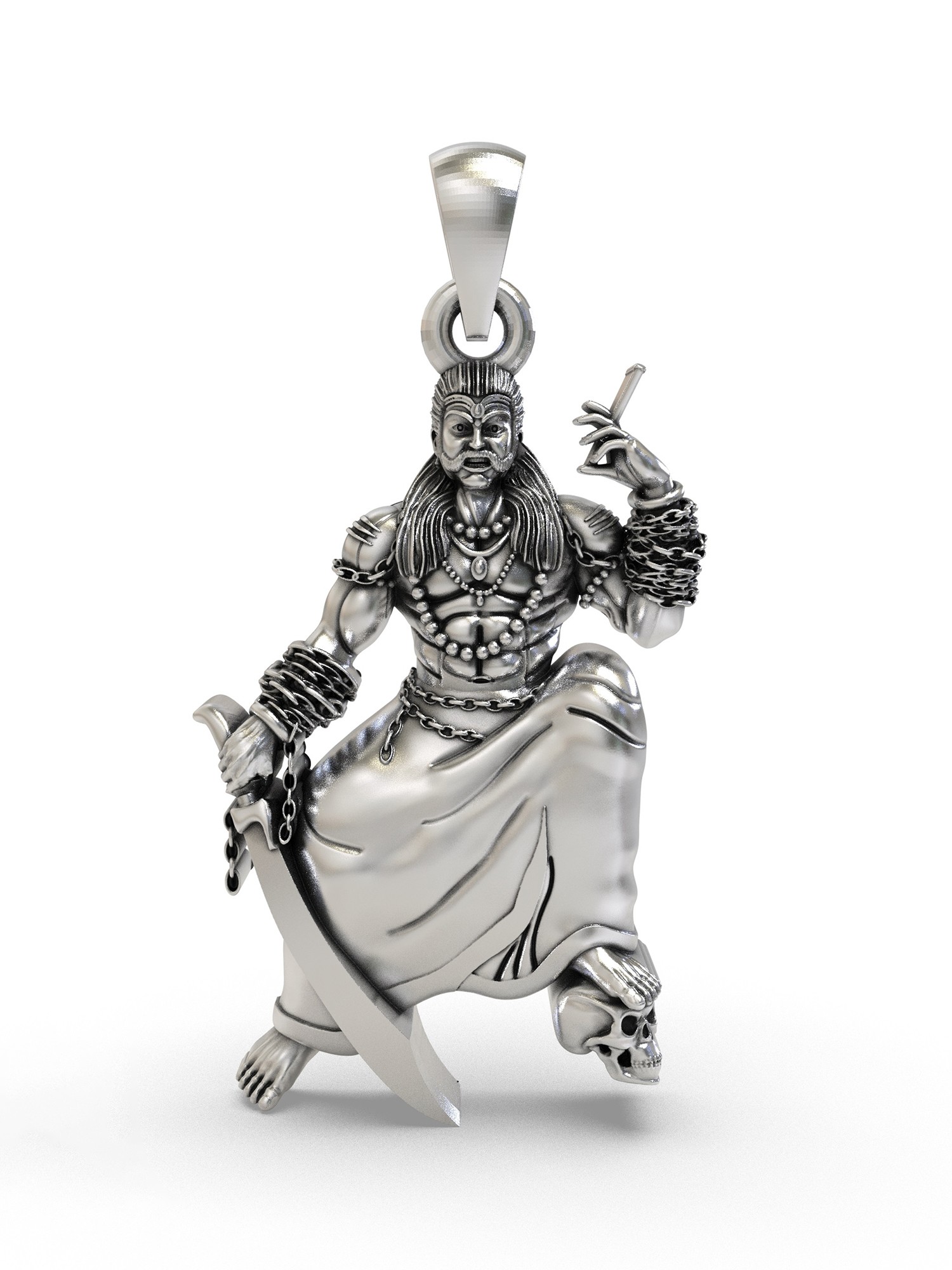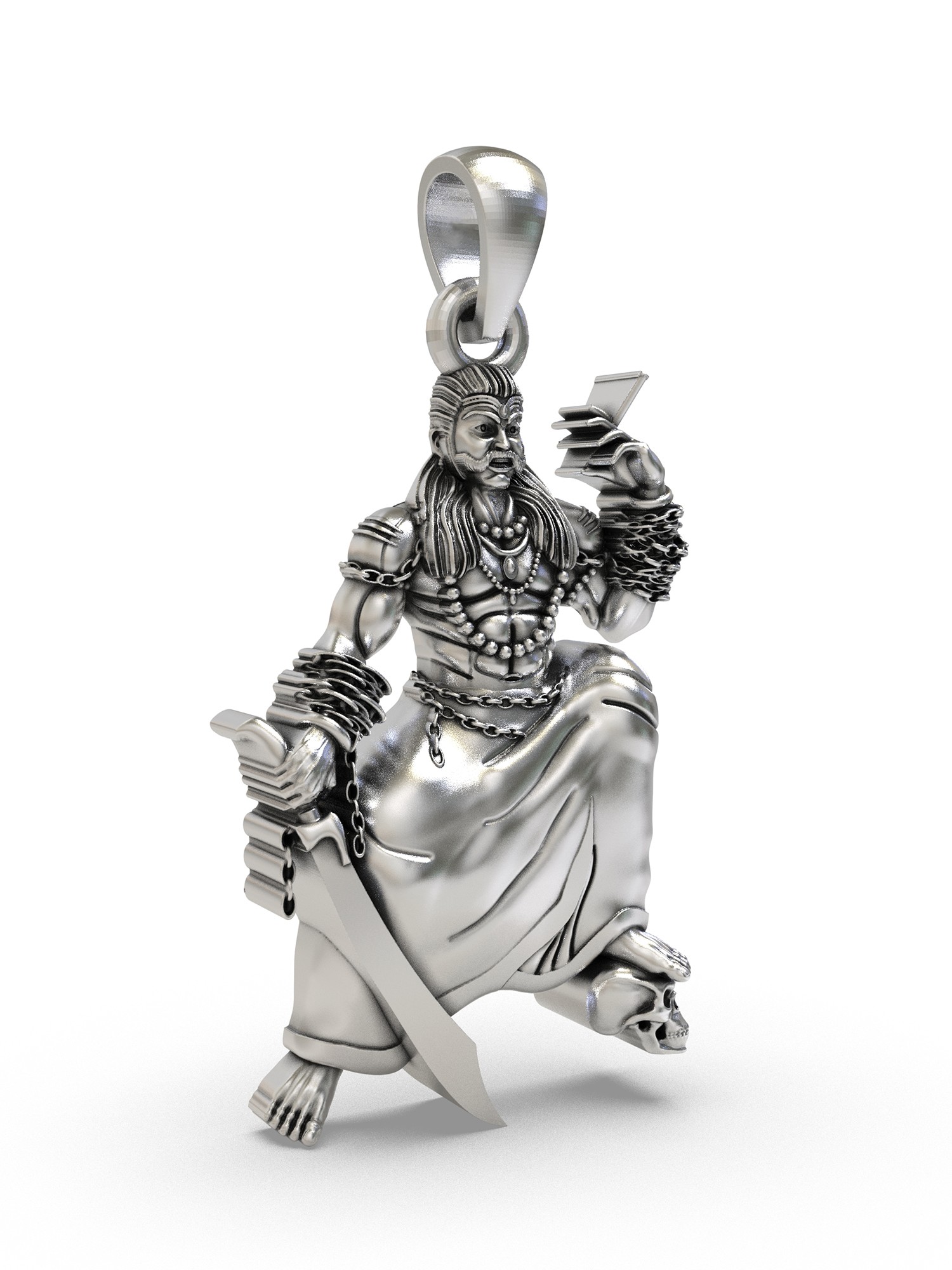 Observe the artistry infused into every detail of this striking pendant. Forged from sterling silver, this piece showcases the skill of our master artisans. The finely sculpted features capture the essence of the deity, conveying a sense of power and grace. From the intricate details of the chains adorning the arms to the piercing gaze, no aspect is overlooked. This pendant is a testament to the dedication and expertise that goes into creating a lasting work of art.