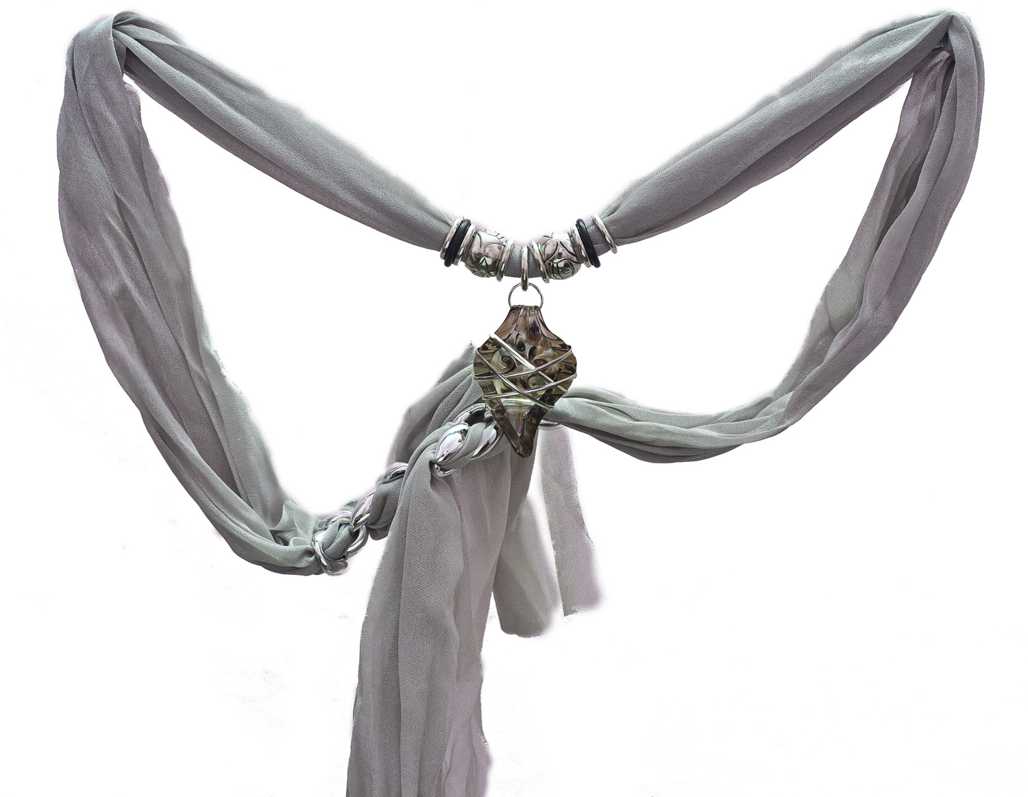This fusion of a scarf and necklace brings together fashion and art, creating a statement piece that effortlessly enhances any outfit with a blend of style and refinement, making it a must-have accessory for fashion enthusiasts.