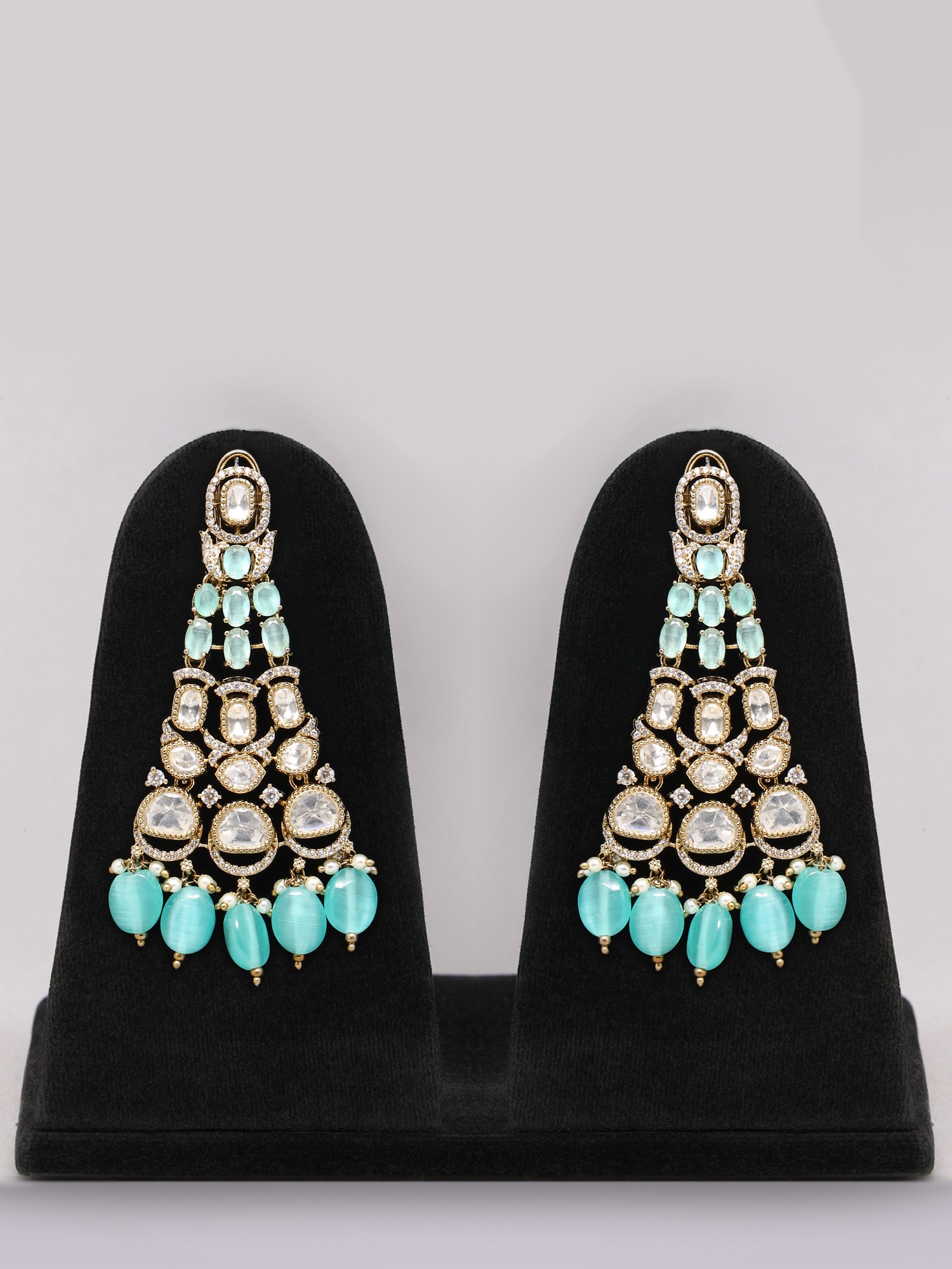 The sea green stones offer a rich, eye-catching color that enhances the bridal appeal.