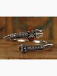 Shiva is everywhere; he is the Adi and Anta or the beginning and end of everything. His blessings are carried by his devotees in many forms. The devotees prefer jewelry inspired by the weapons carried by Lord Shiva as they provide them with the positive energy that comes from Lord Shiva. This Shiva Trident with Rudraksha Open Bracelet is a sterling silver marvel resonating with spiritual significance. This open bracelet features one end adorned with a damru, Trishul, and Rudraksha bead, while the other showcases a gada or mace emblem. The natural-colored Rudraksha adds an authentic touch, signifying spiritual purity. Meticulously crafted in sterling silver, the intricate detailing captures the essence of Lord