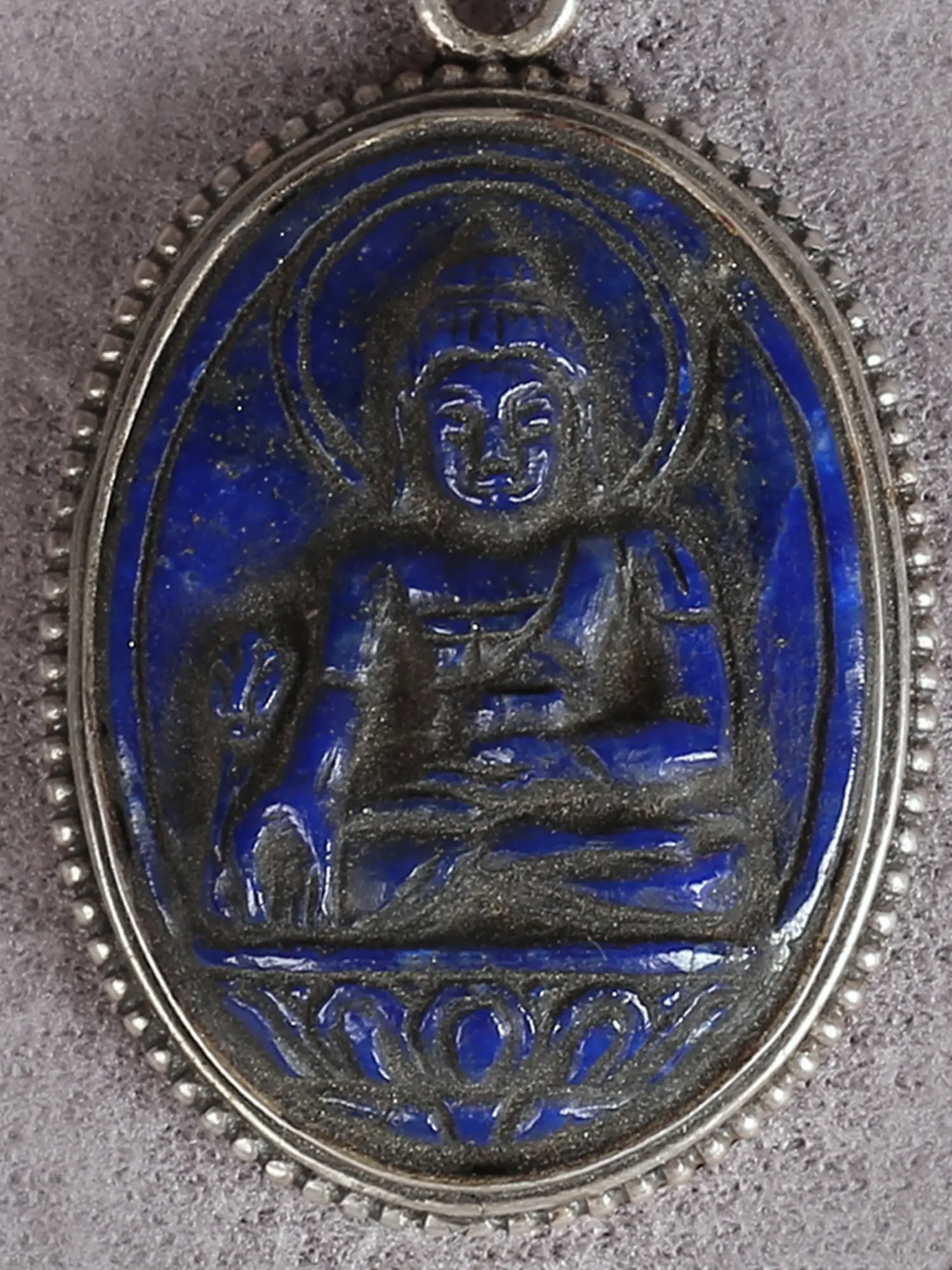 The lapis lazuli stone, with its distinctive deep blue hue, holds significant spiritual importance in Tibetan Buddhism, where it is associated with the Healing or Medicine Buddha, known as Bhaisajyaguru. The stone is revered as the "stone of total awareness," believed to facilitate the expansion of consciousness, attuning the wearer to their intuitive and psychic faculties. It is also thought to enhance intellectual capacity, aiding in the pursuit of wisdom and the expansion of one's knowledge base. The use of lapis lazuli in religious artifacts and jewelry, such as the pendant, serves to remind the bearer of their connection to the divine and their inner truth.