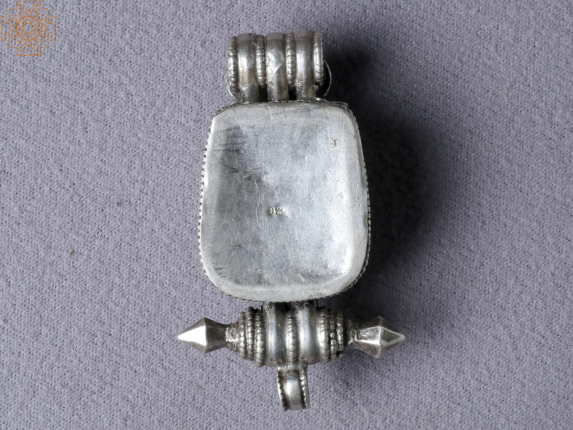 To complement the blue color, two red stones are placed above the stone, and one tear-drop red stone is placed below. The silver frame magnifies the look of the pendant and also blesses the piece with the goodness of the metal. This pendant can be worn daily as an amulet or just as an occasional accessory without the scrolls.