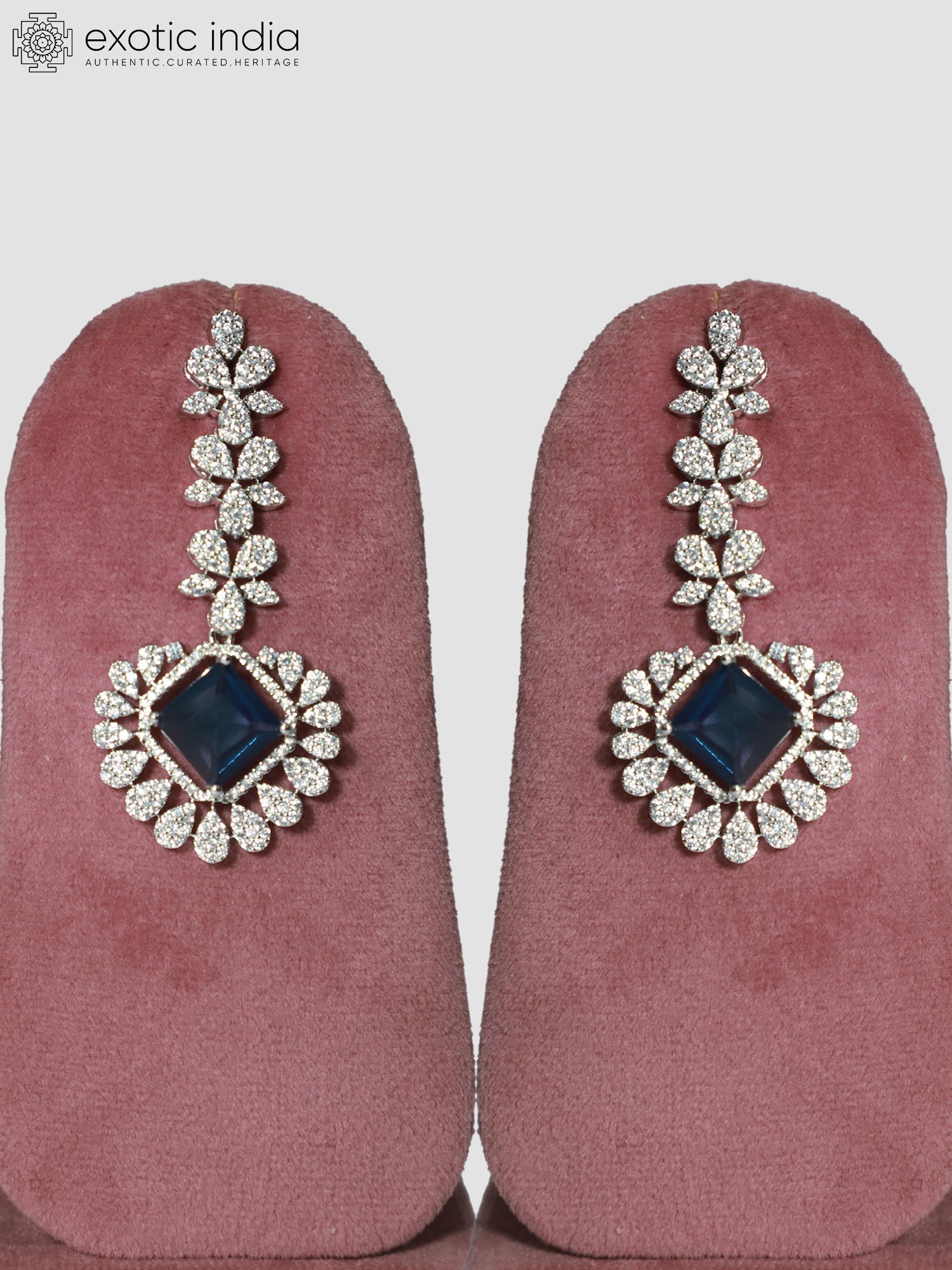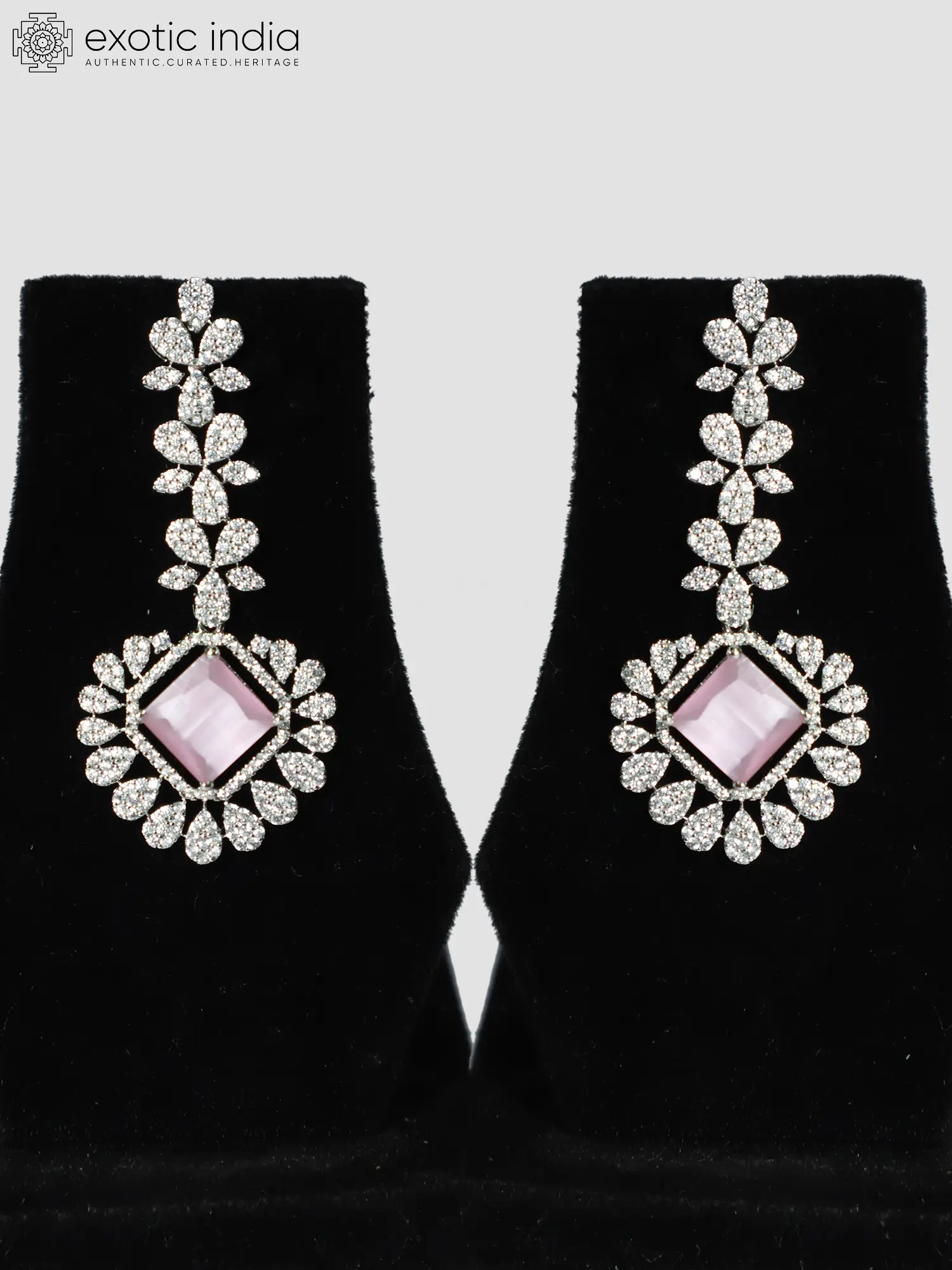 The necklace showcases a delicate chain, leading to a stunning centerpiece. The design incorporates shimmering American Diamonds that catch the light with every movement. The arrangement of these stones creates a visually captivating pattern that draws the eye and exudes elegance. The earrings echo the design of the necklace, creating a harmonious and balanced aesthetic. Their graceful dangle adds a touch of movement and further enhances the overall sparkle of the set.