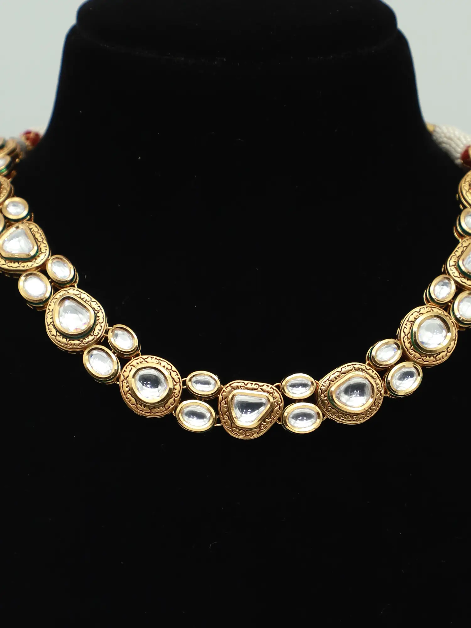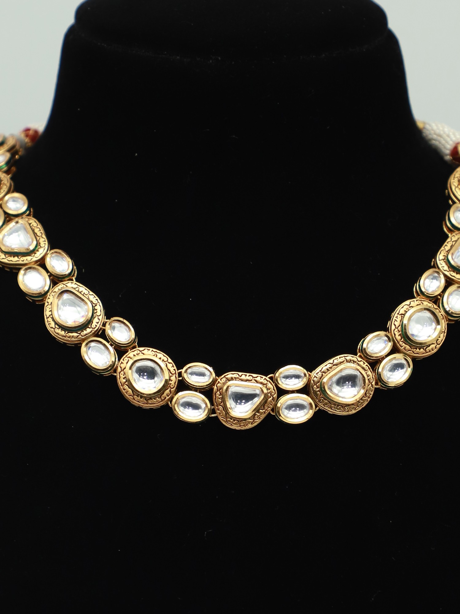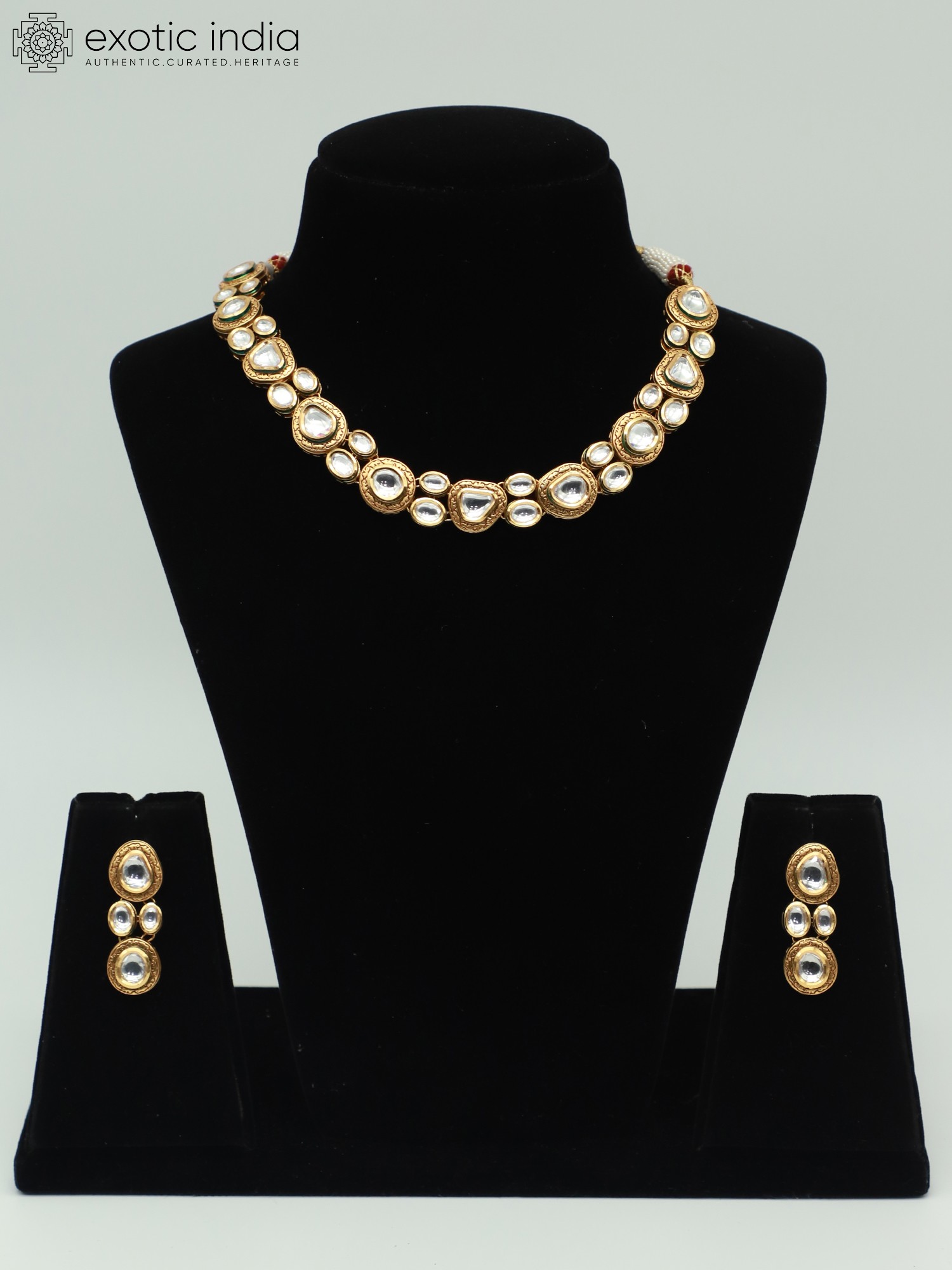 Choker Design Necklace Set With Drop Beads And Earrings
