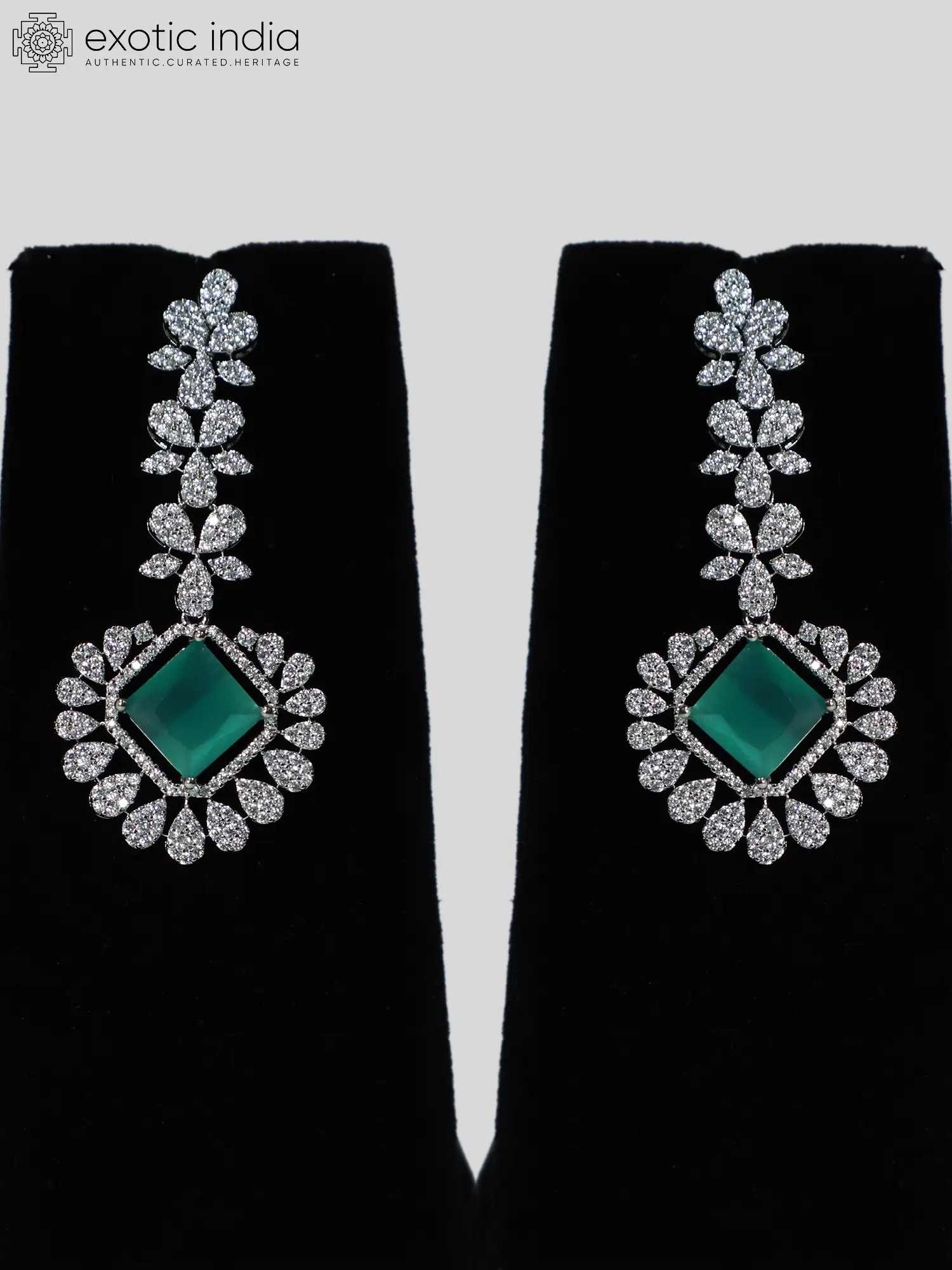 The necklace showcases a delicate chain, leading to a stunning centerpiece. The design incorporates shimmering American Diamonds that catch the light with every movement. The arrangement of these stones creates a visually captivating pattern that draws the eye and exudes elegance. The earrings echo the design of the necklace, creating a harmonious and balanced aesthetic. Their graceful dangle adds a touch of movement and further enhances the overall sparkle of the set.