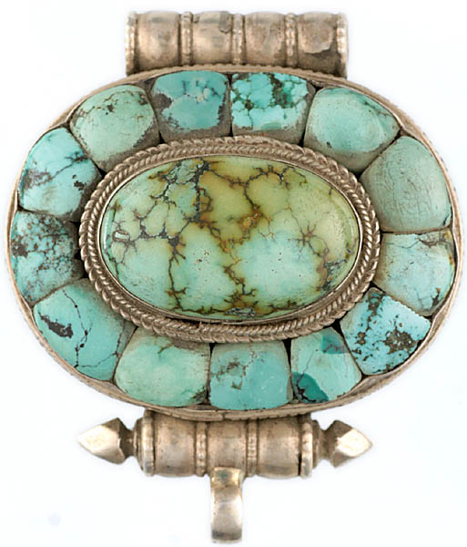 The gau combines in itself form and function. Since it is a container to hold and protect various charms placed within, it consists of two basic parts that fit together, so that access to its inner space is possible. Most generally the gau is made of silver (nga), which is used for the visible front, and the removable back half can be copper, brass, or silver itself.