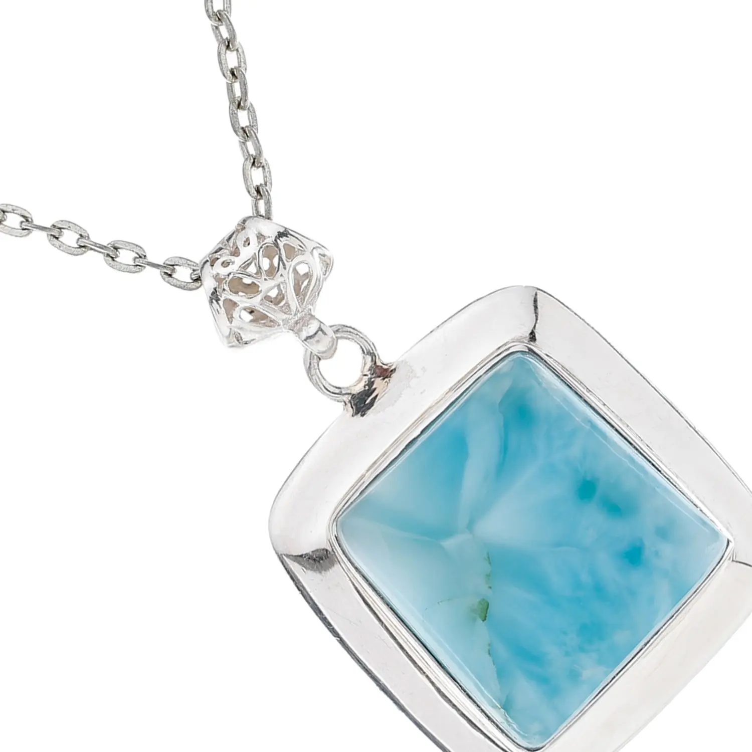 Square Amazonite Gemstone Pendant with Sterling Silver