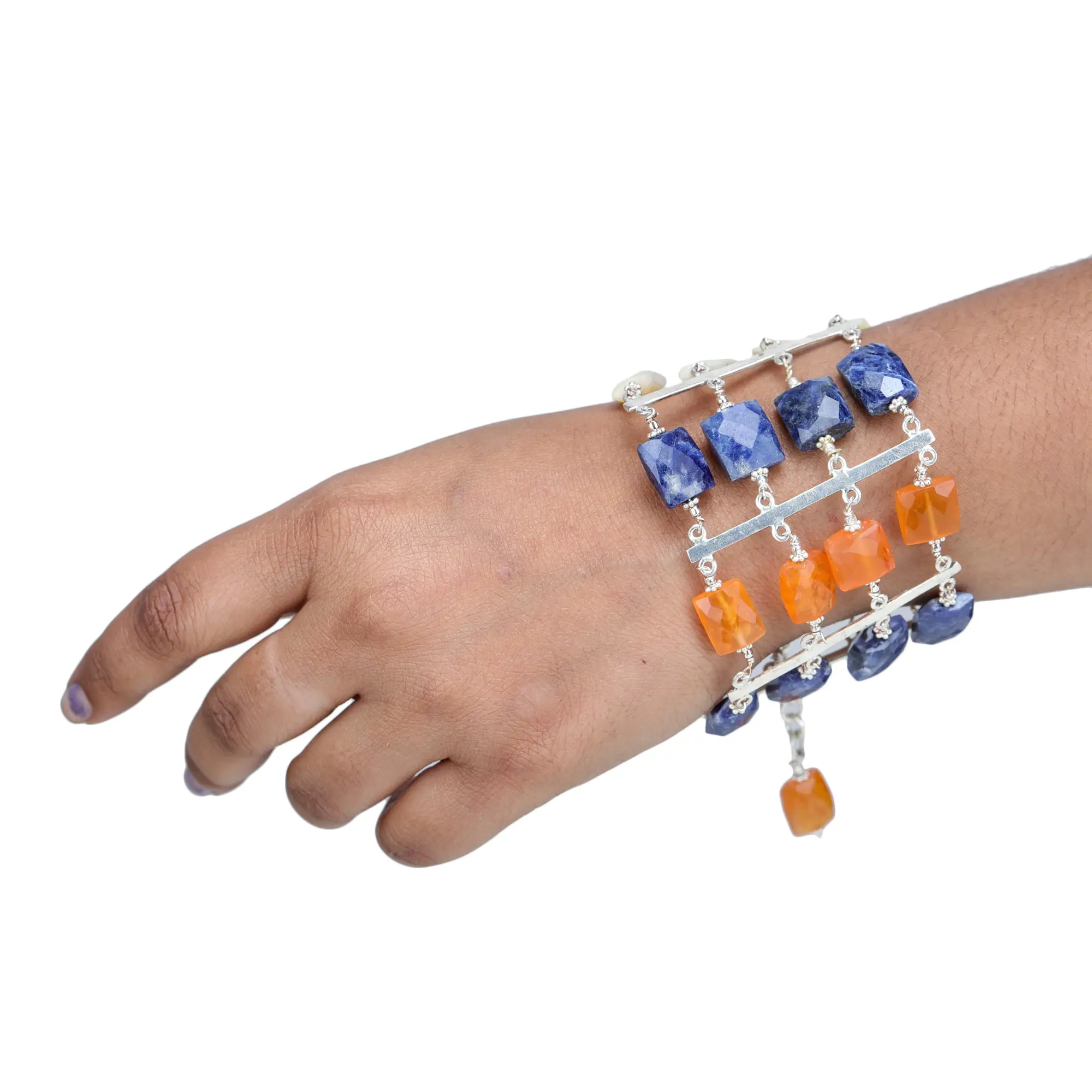 Glam your wrist with sophistication and style without square gemstones in multiple layers to create a captivating and chic accessory. Made with precision, this bracelet seamlessly blends modern fashion with a touch of timeless elegance. Make a bold statement with this square gemstone multiple-layer bracelet, where contemporary design meets the captivating charm of the square gemstone.