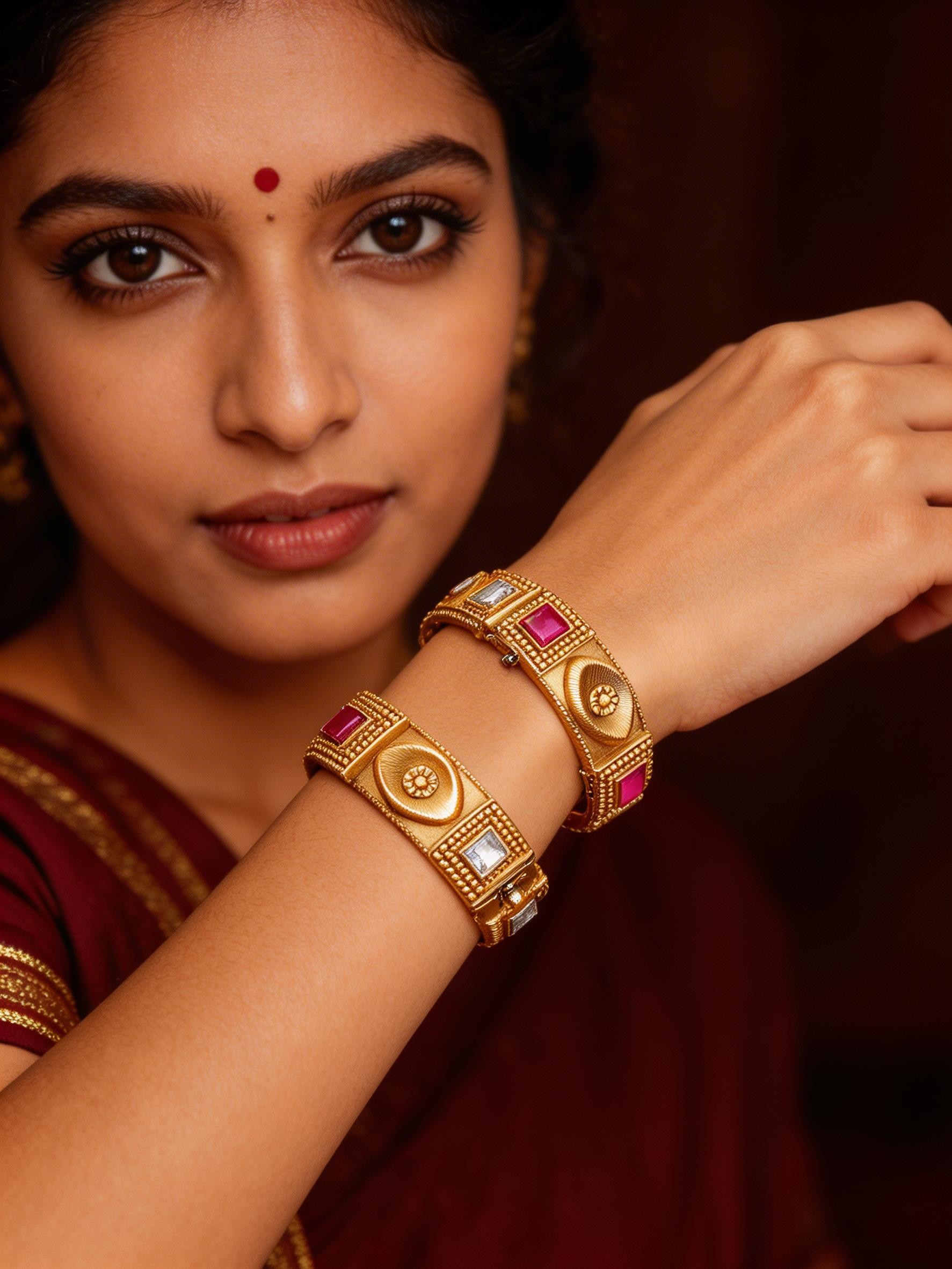 Stone Studded and Beaded Pacheli Bangles (Set of 2)