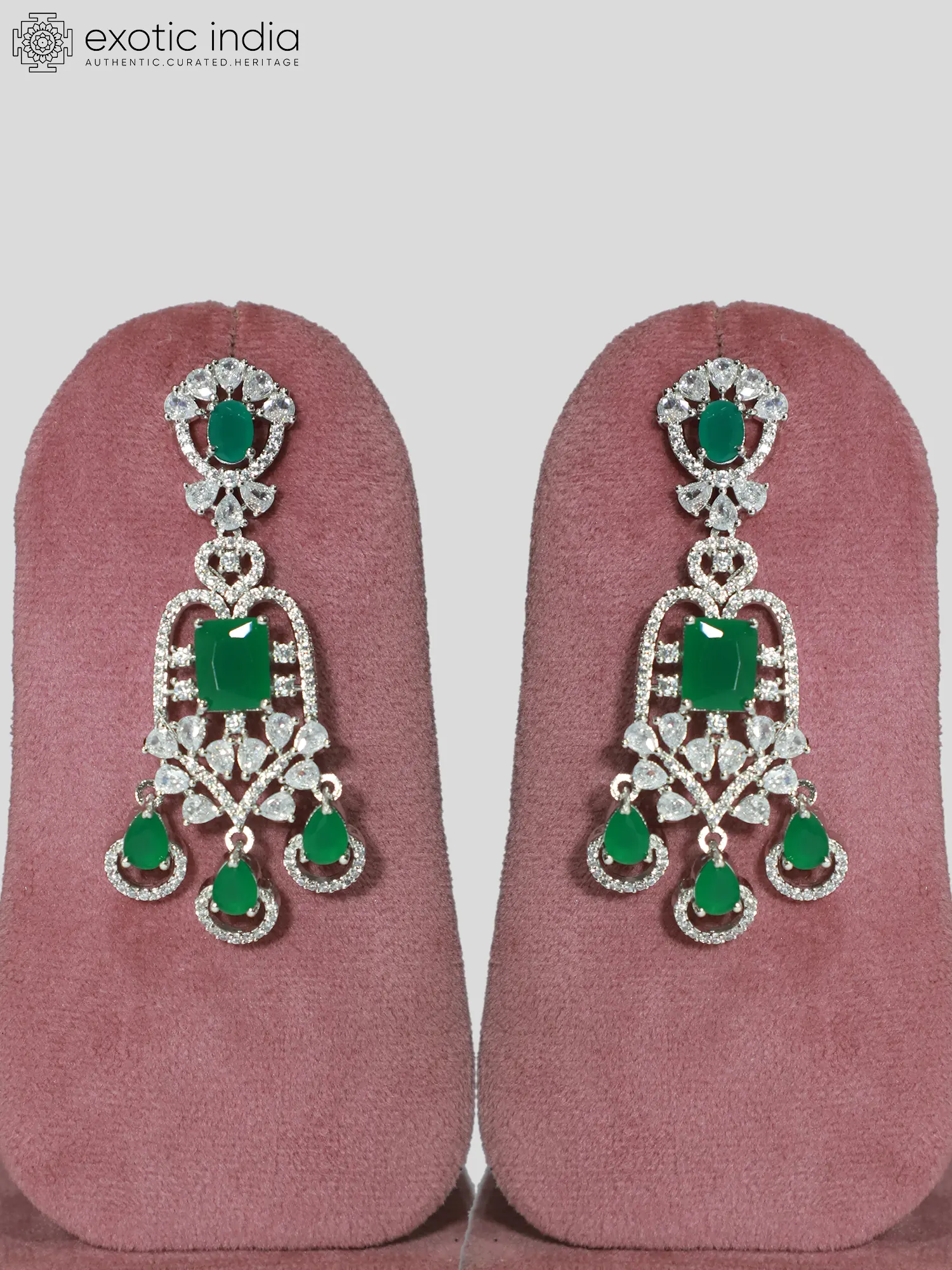 The accompanying earrings perfectly complement the necklace, echoing the same design elements and enhancing the set's overall impact. These earrings are designed with an attention to detail, mirroring the pendant's shape and gemstone arrangement. They strike a harmonious balance between being eye-catching and comfortable to wear. Their elongated design adds a touch of sophistication, gracefully elongating the neckline and drawing attention to your face. Each earring features a secure clasp, ensuring they stay in place throughout the day or evening. The earrings work in harmony with the necklace, resulting in a unified and well-balanced look.