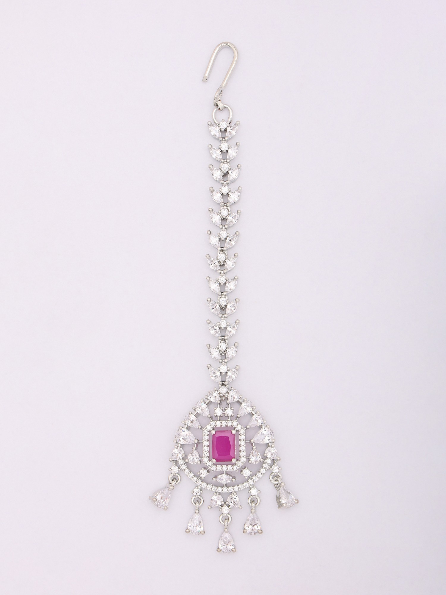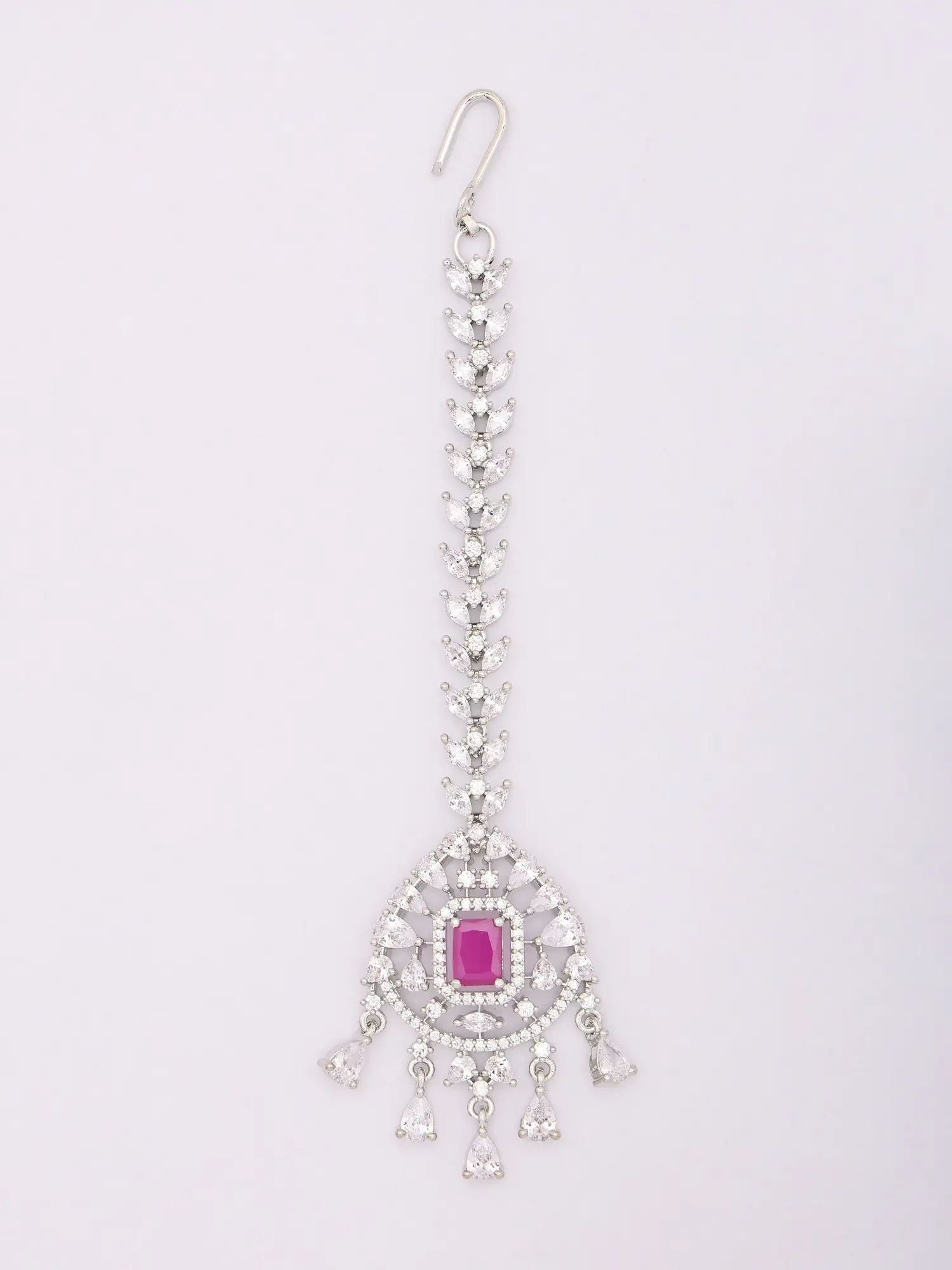 Stunning Cubic Zirconia Jewelry Set with Maang Tikka and Earrings