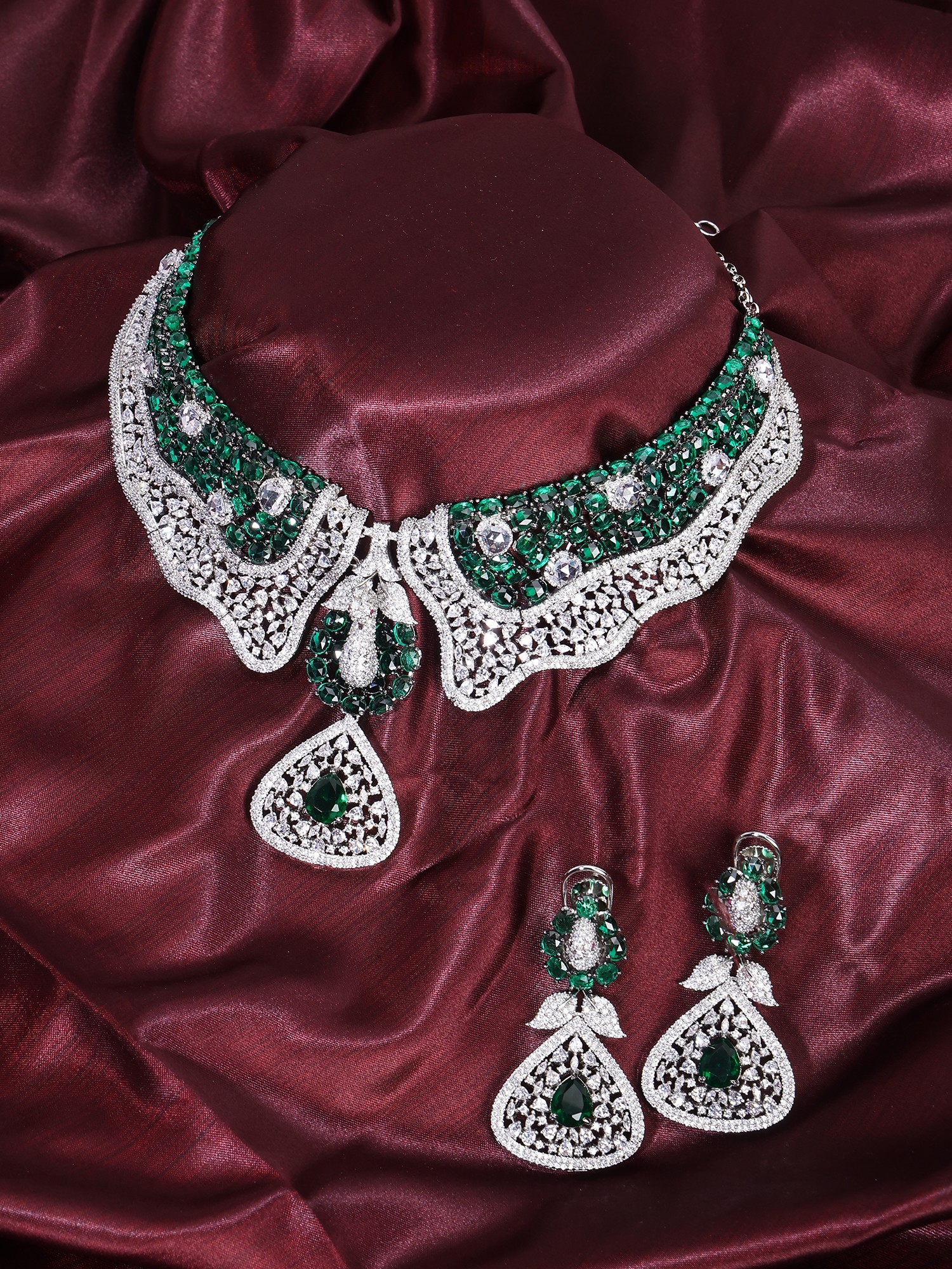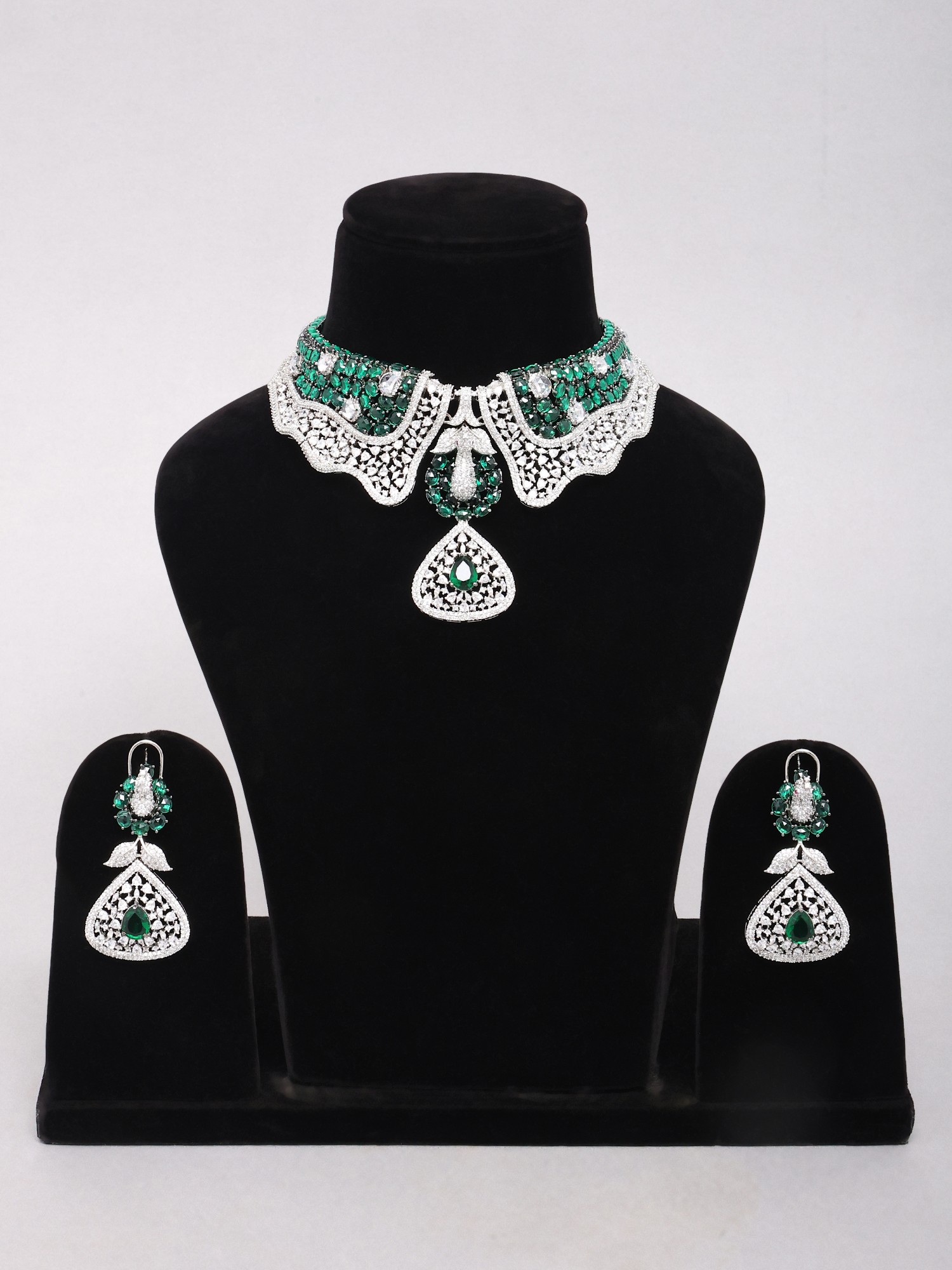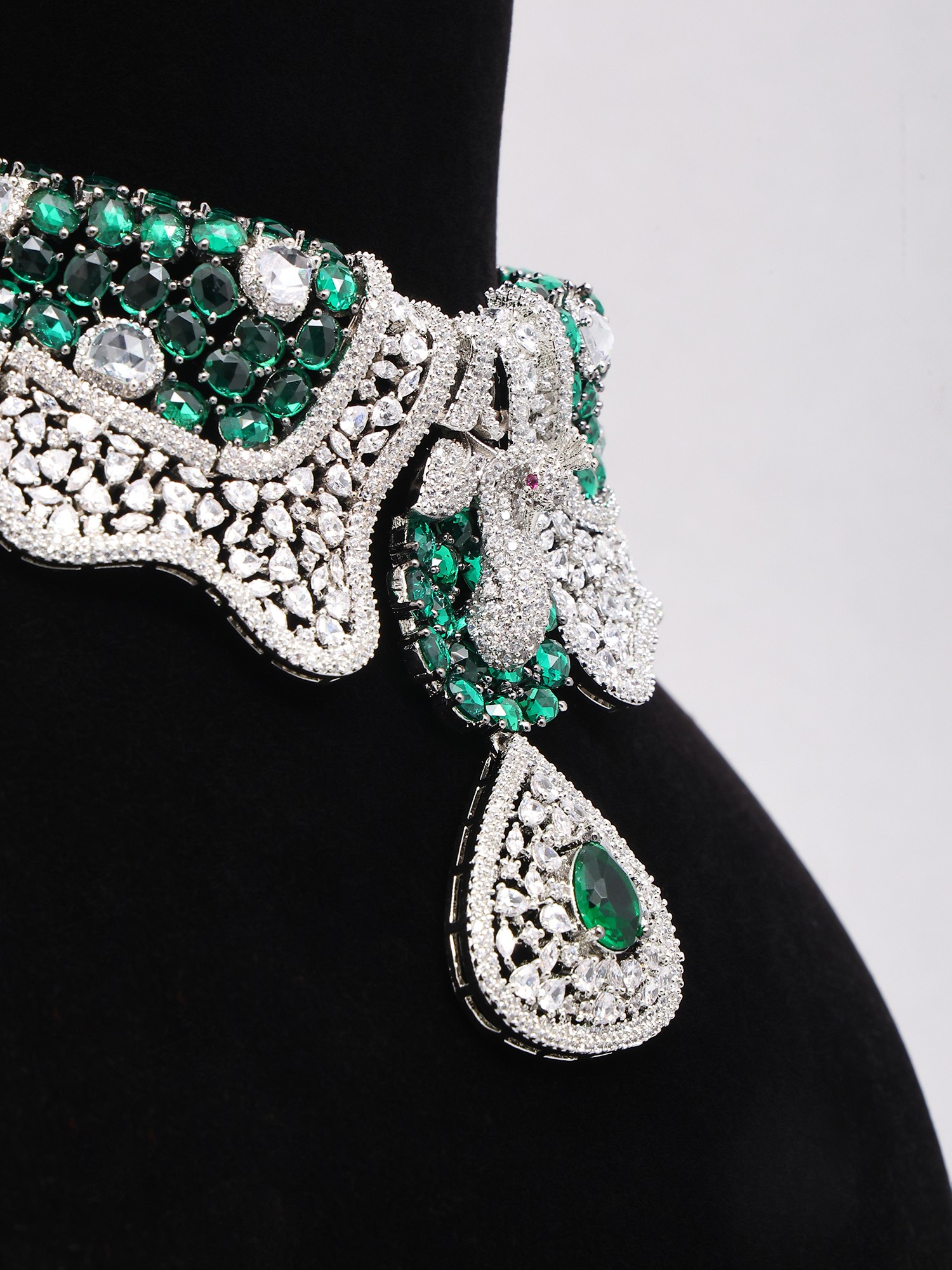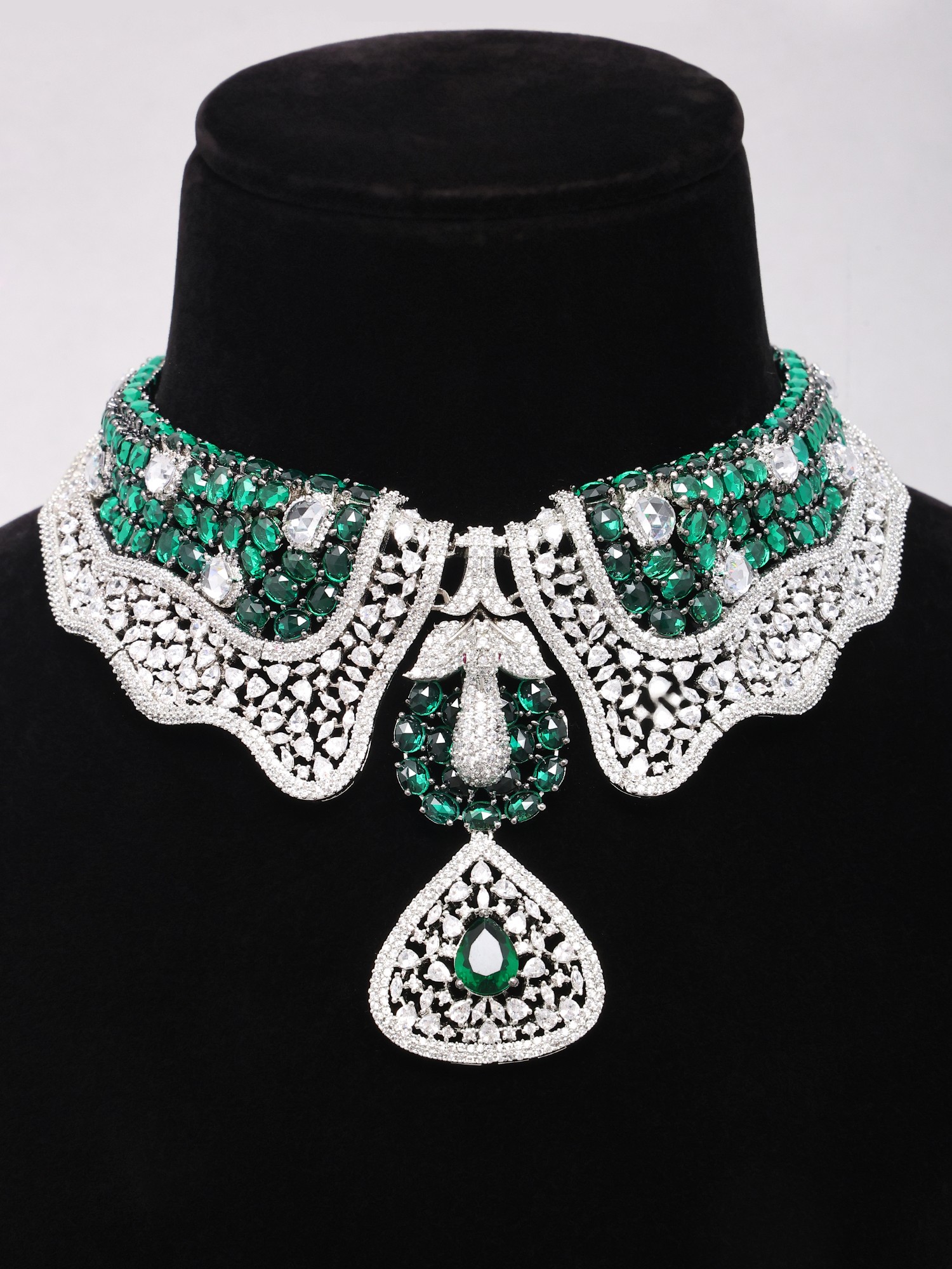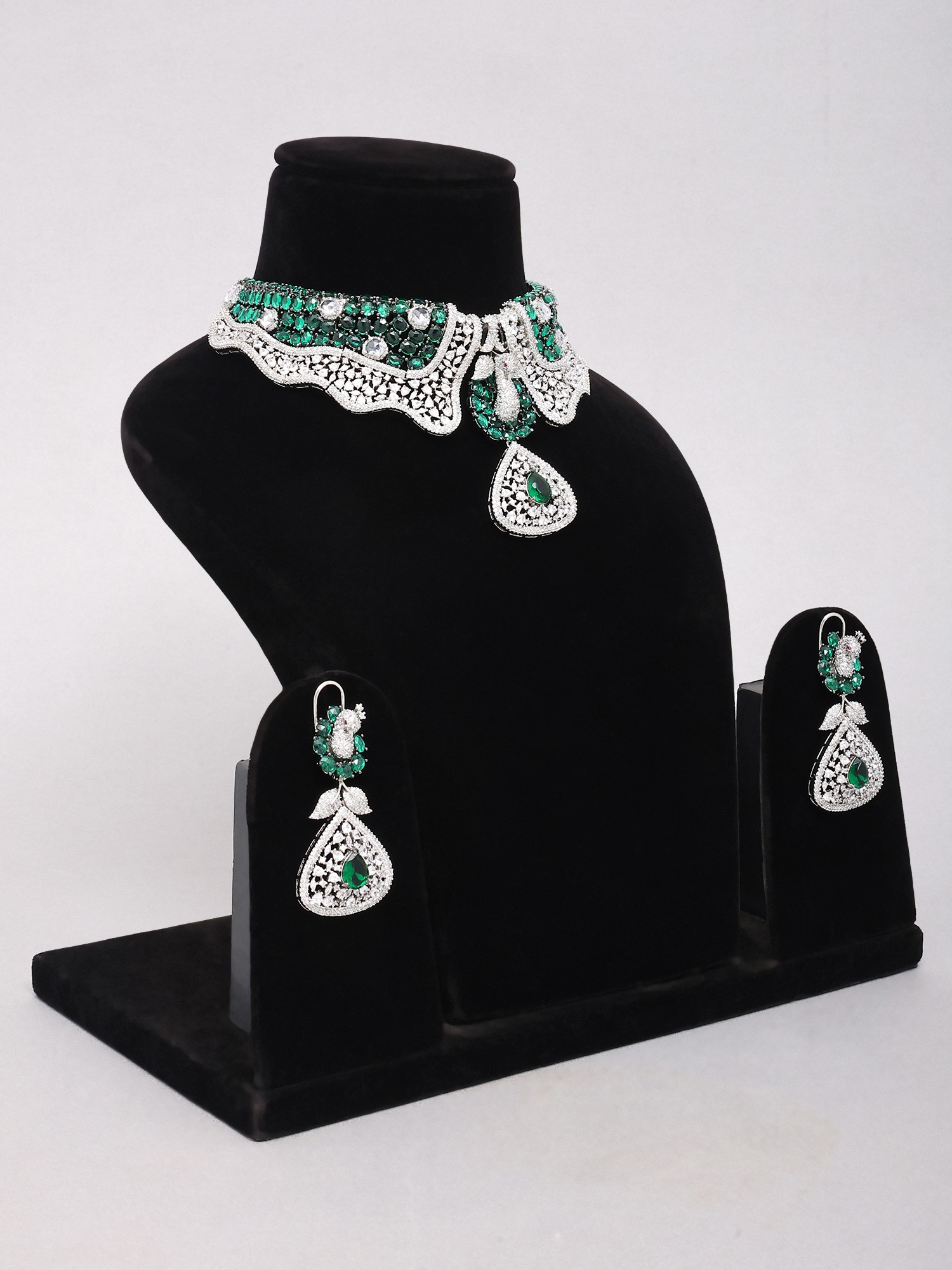 Statement Peacock Choker and Earring Set with Green Stones