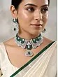 Green Meenakari Kundan Bridal Necklace Set with Earrings and Maang Tikka