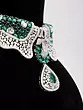 Adorned with vibrant green stones that complement the diamond accents.