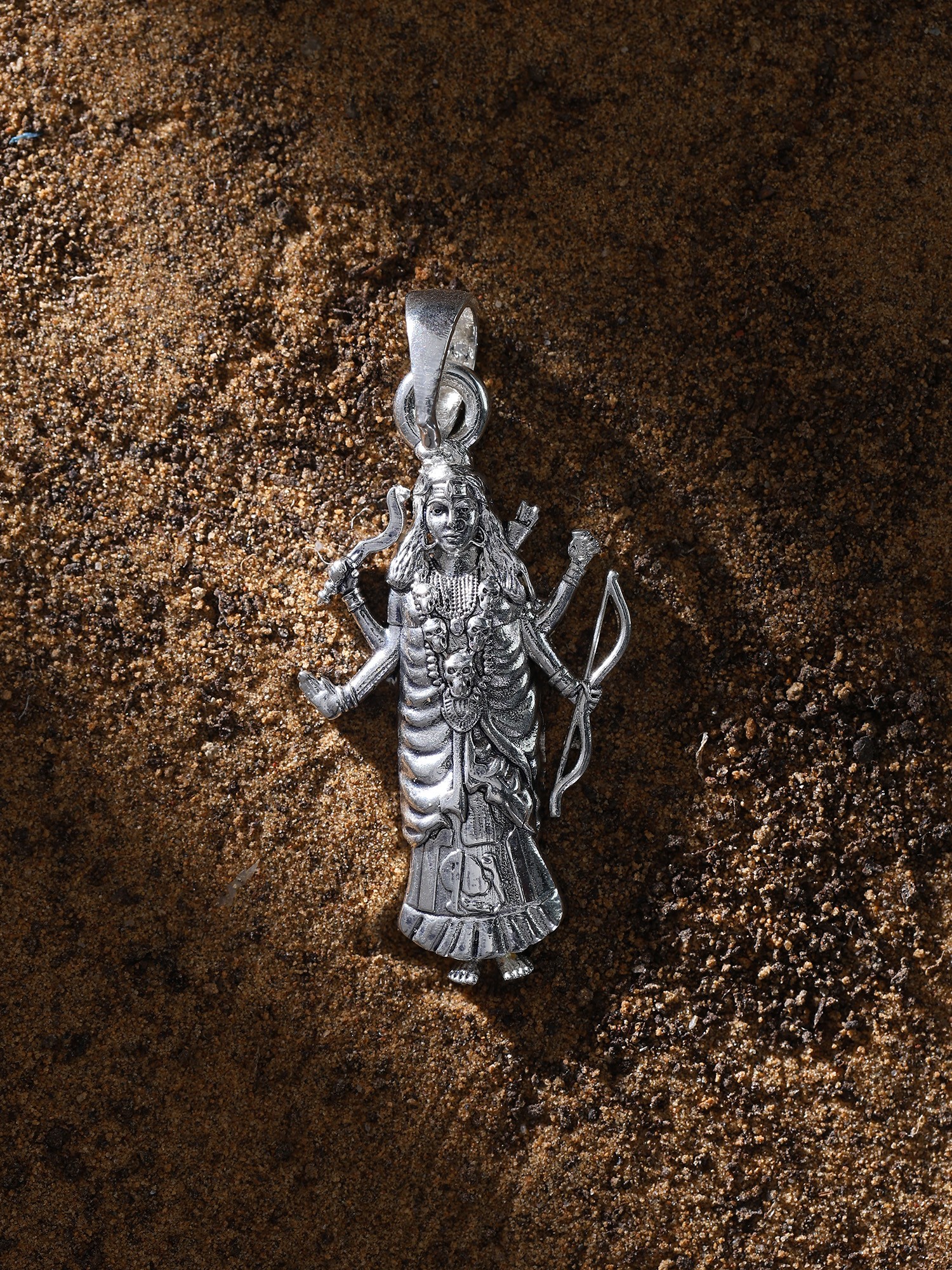 Triangle Shape Hand-Painted Goddess Durga Pendant