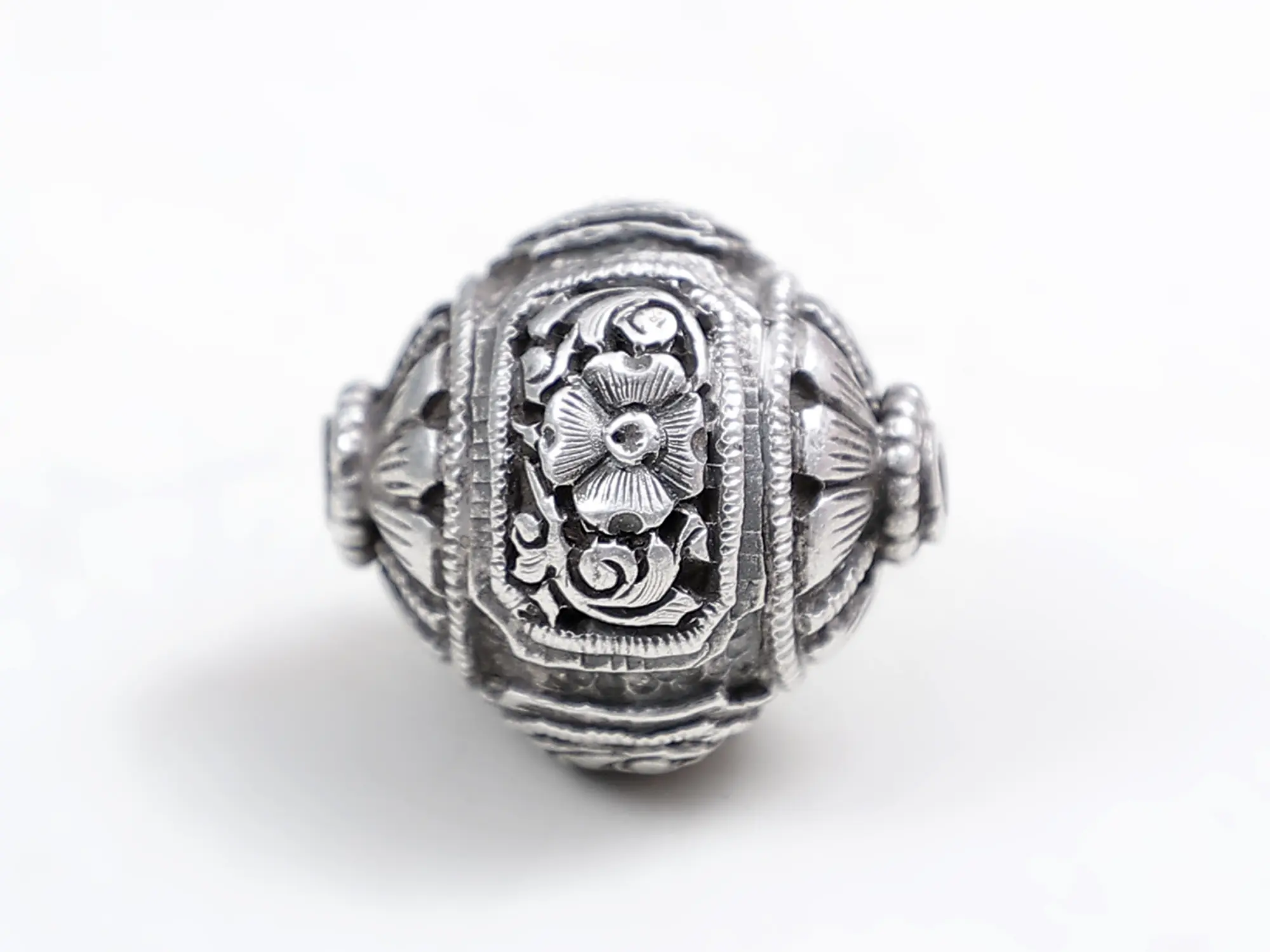 This Sterling Silver Bead, intricately designed with floral patterns, embodies elegance and charm. The delicate flower motifs showcase meticulous craftsmanship, creating a refined and timeless piece. The sterling silver composition adds a touch of sophistication, making it versatile for various jewelry designs.