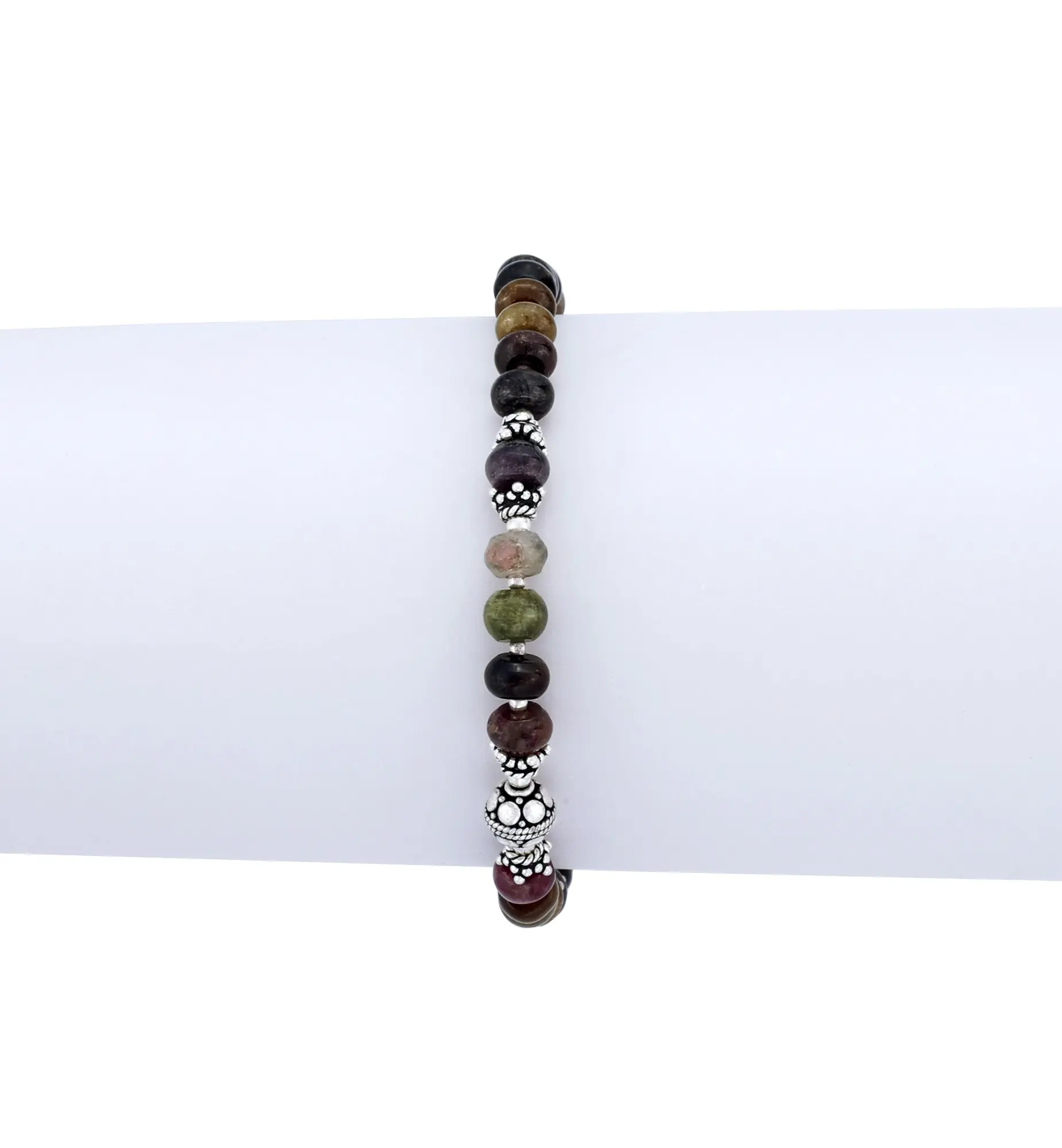 Adore your wrist with elegance using our sterling silver bracelet featuring multi-color stones. The combination of these exquisite stones creates a captivating and vibrant accessory. Crafted in sterling silver, the bracelet seamlessly blends modern style with a burst of lively charm.