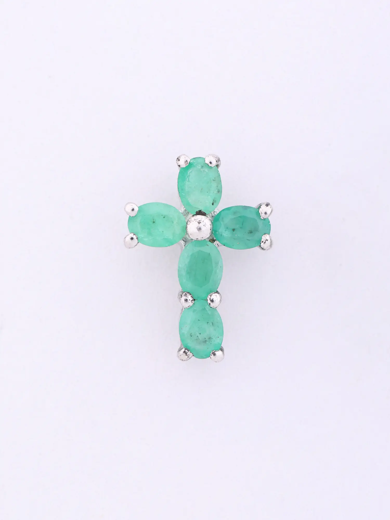 Features a striking cross design crafted with vibrant emerald gemstones.