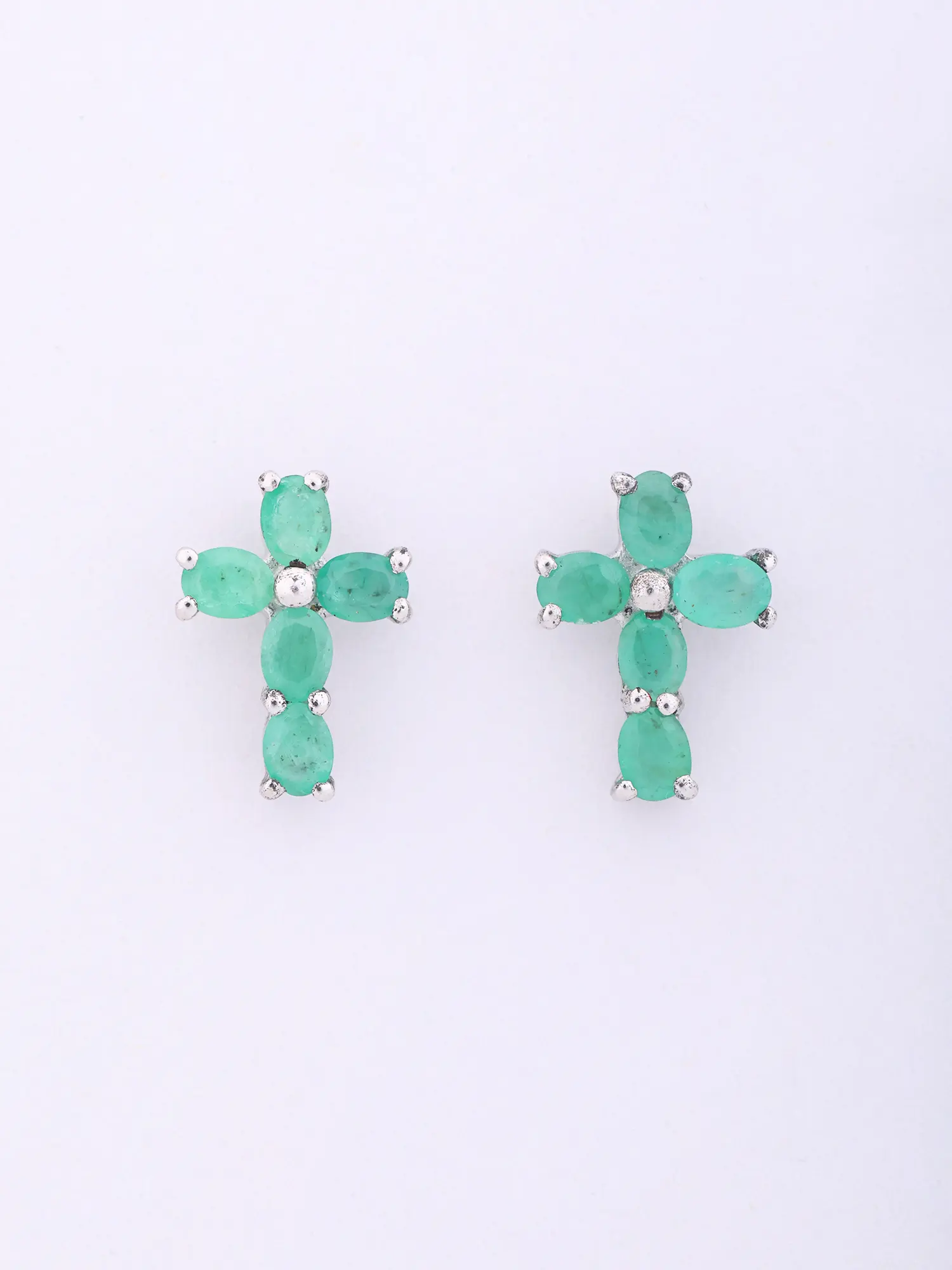 Sterling Silver Emerald Cross Stud Earrings