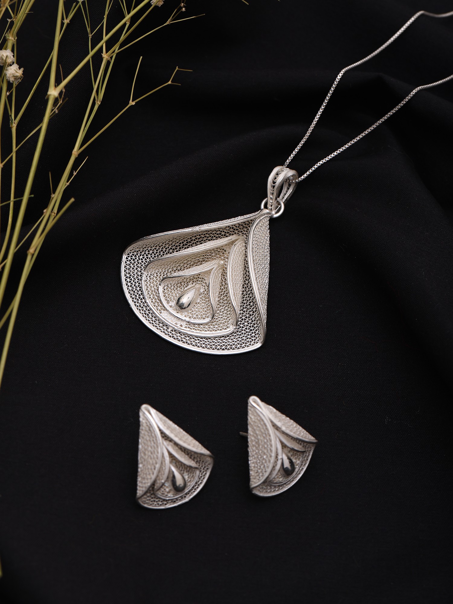 Each element of this captivating set is born from the hands of master artisans, employing the ancient Tarakasi technique. Delicate strands of the finest sterling silver are meticulously twisted, drawn, and woven into intricate patterns, forming a lace-like tapestry. This demanding process, passed down through generations, results in pieces that are both remarkably light and structurally sound, showcasing a commitment to traditional craftsmanship.