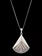 Pendant measures 2.65 inches in height, with a layered, openwork design reminiscent of unfurling petals.