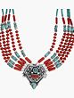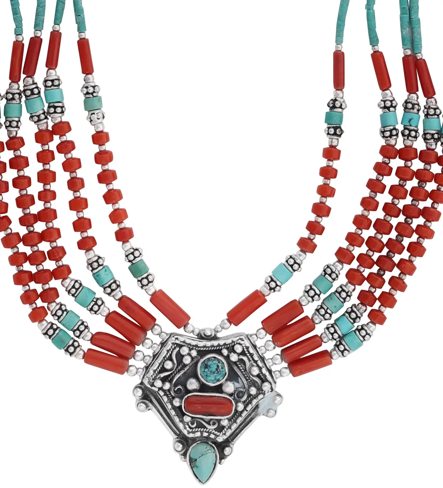 This exquisite necklace is a captivating blend of vibrant colors and meticulous craftsmanship. The rich, deep red of the coral beads is beautifully complemented by the cool, calming turquoise, creating a stunning visual contrast that’s sure to turn heads. Each bead is carefully selected and strung, ensuring a consistent, high-quality finish. The necklace is more than just an accessory; it's a statement piece, reflecting a bold and confident personality.