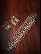Lakshmi and Ganesha are carved with a pleasing simplicity, a tribal touch in their form which gives the sterling silver necklace set a remarkably Indian character. The use of blue and green opaque enamel paint around the carving of Lakshmi and Ganesha highlights their images and complements the overall golden color of the necklace. With a modern appeal and its roots in the Hindu tradition, this sterling silver Ganesha Lakshmi choker will instantly amp up your celebratory appearance, in a sari, suit, or Indo-western attire, while bringing to you the boons of wisdom and wealth.