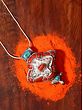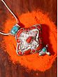 Presenting you this gau box pendant decorated with luscious red coral and turquoise gemstones. Add a touch of beauty to any outfit with this chic pendant. Gau box is including an amulet and is a small prayer container or box that is worn as an accessory.