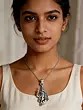 This item is meticulously crafted from sterling silver. The cool, luminous quality of the silver enhances the intricate details of the design, adding to its visual appeal. The pendant's smooth, polished surface reflects light beautifully, creating a subtle yet eye-catching shimmer. The durable nature of sterling silver ensures that this piece will retain its beauty and integrity for years to come, making it a timeless addition to your jewelry collection.
